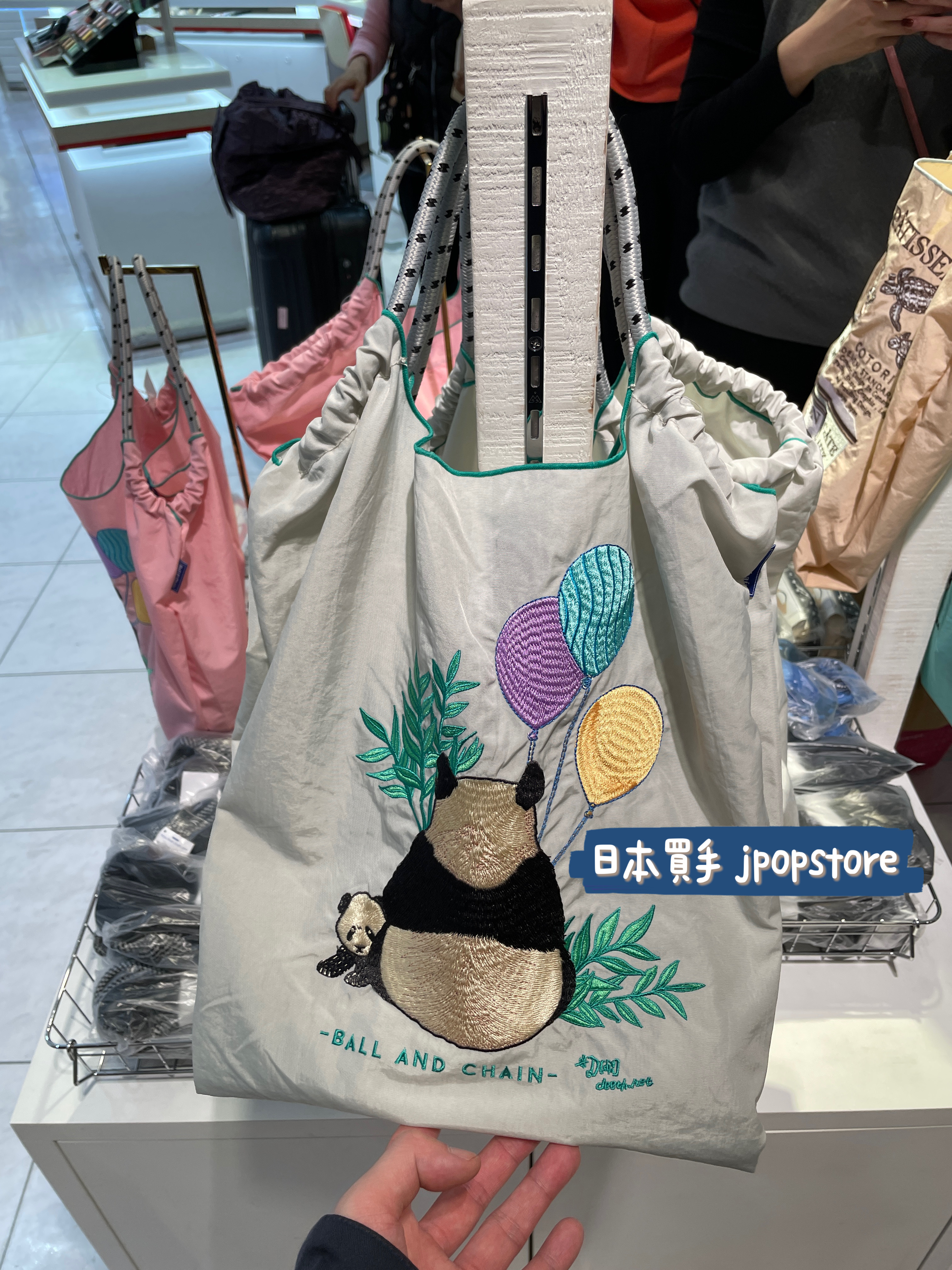 Popular Japanese eco bag brand BALL & CHAIN, featuring a lovely panda & baby embroidery design, stylish and functional.