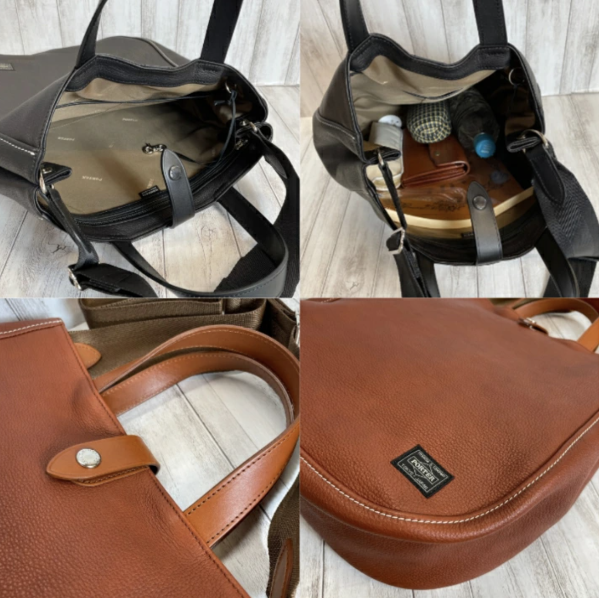 PORTER CISCO 2WAY 托特包,集結手提與肩背兩用功能,採用真皮製作,包型挺身大容量,設計簡約,適合日常通勤或假日外出使用。