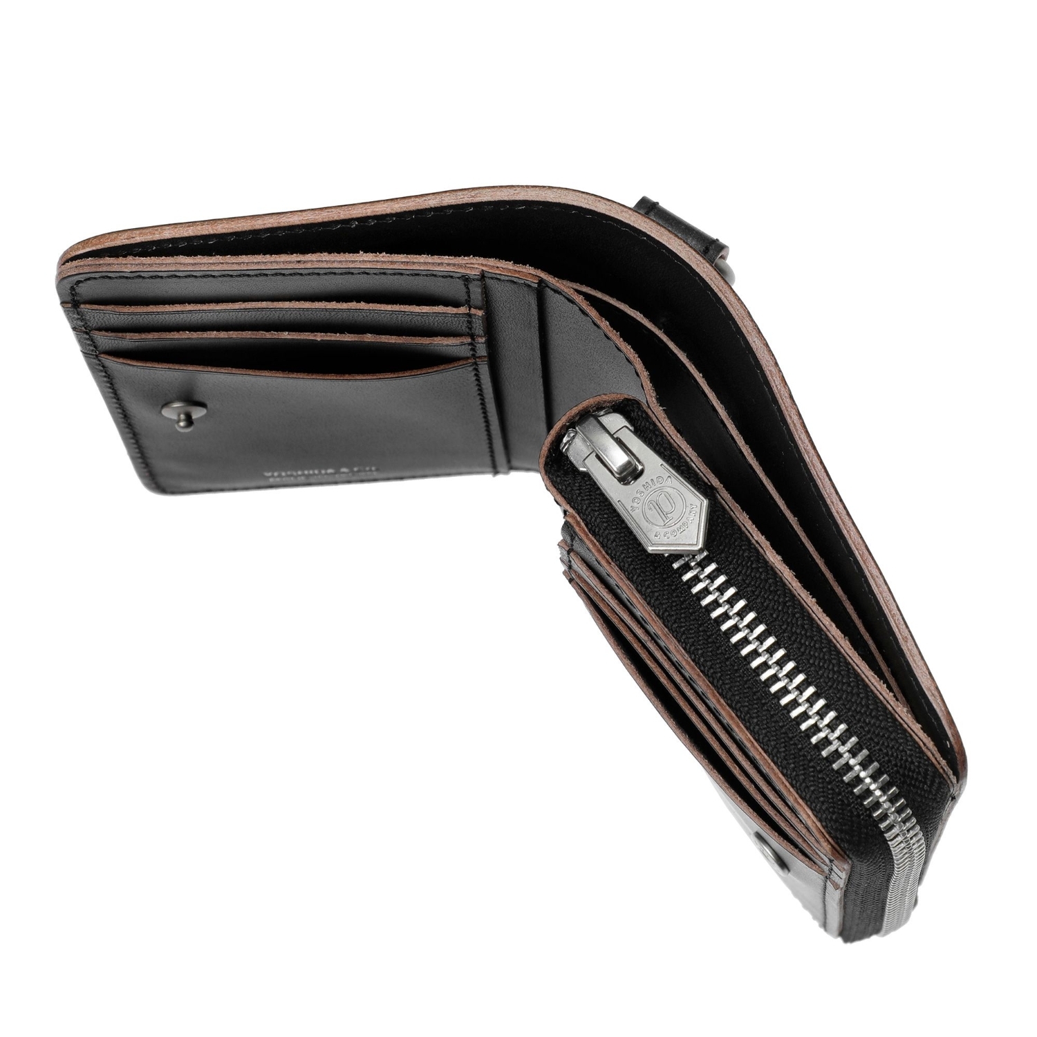 本款折疊銀包雖尺寸輕巧,卻擁有優秀的收納力。內部設有多個卡槽、紙幣隔層與拉鍊零錢袋,外部則配置 IC 卡專用口袋。拉鍊袋開口大,附有襯料,方便存取零錢與查看內容。