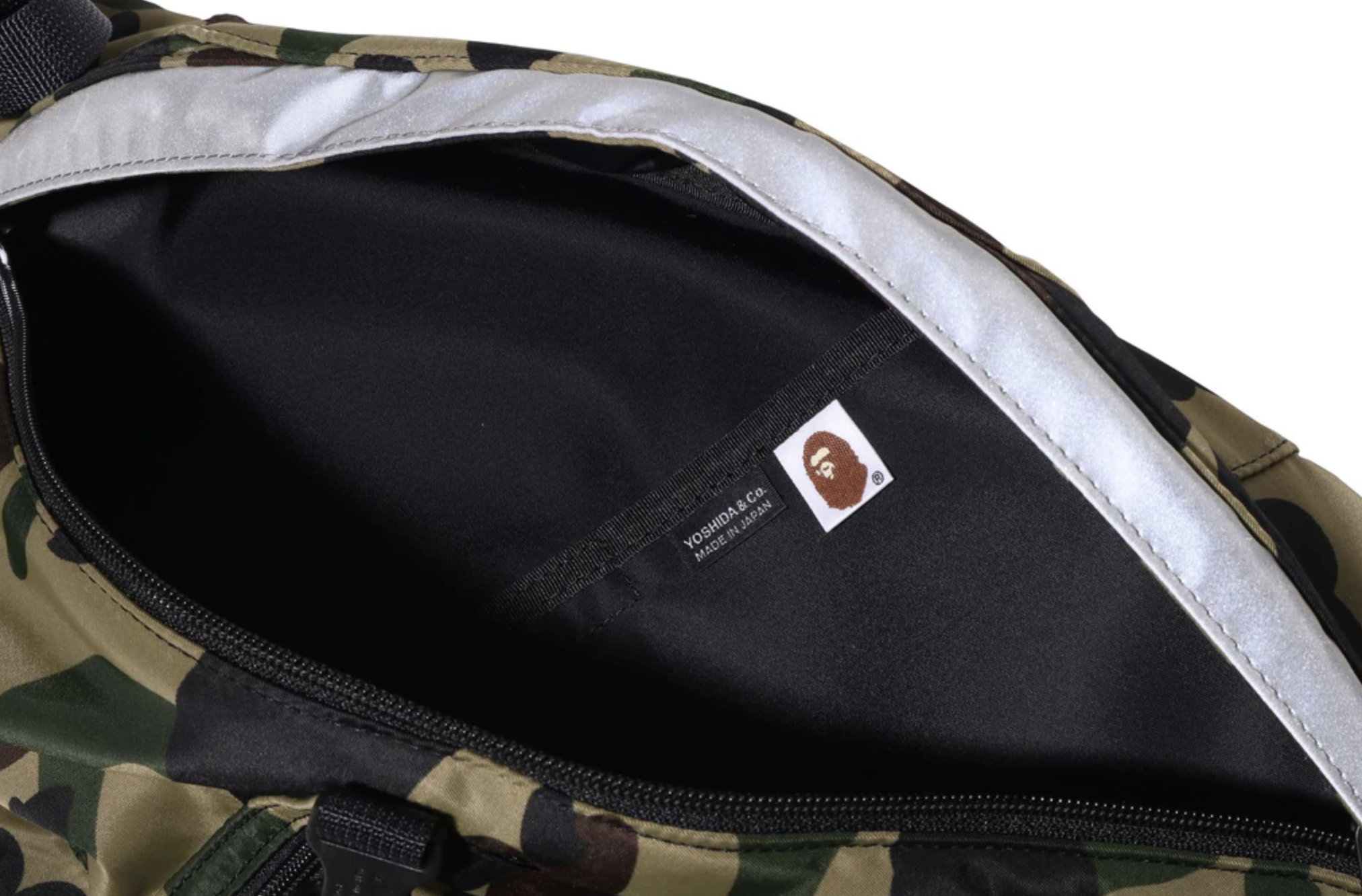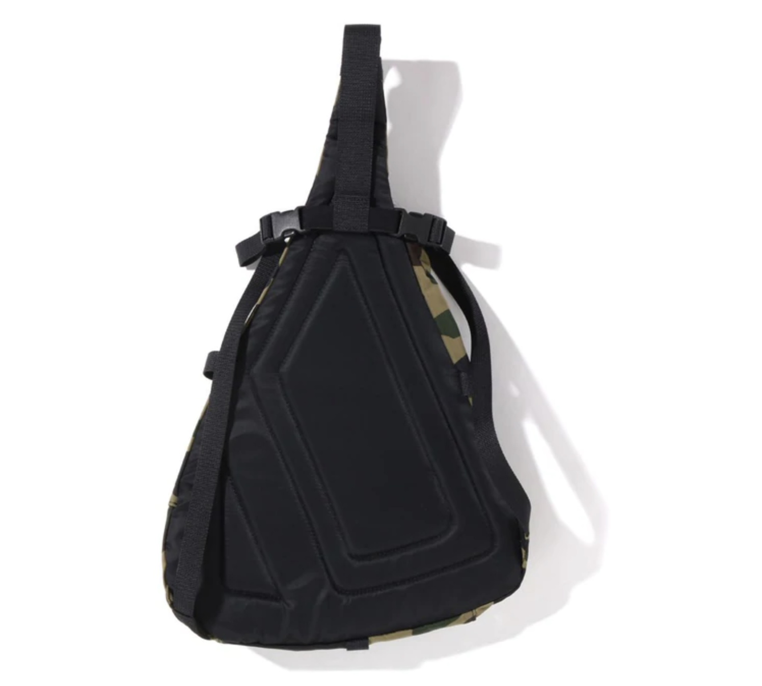 PORTER 聯乘日本潮流品牌 BAPE 打造別注單肩袋,注入標誌性 1ST CAMO 迷彩圖案,融合 PORTER 專業製袋技術與街頭風格美學。袋身設有三條功能性織帶及反光細節,兼具實用與時尚。內部空間寬敞,適合日常使用或短途出行。