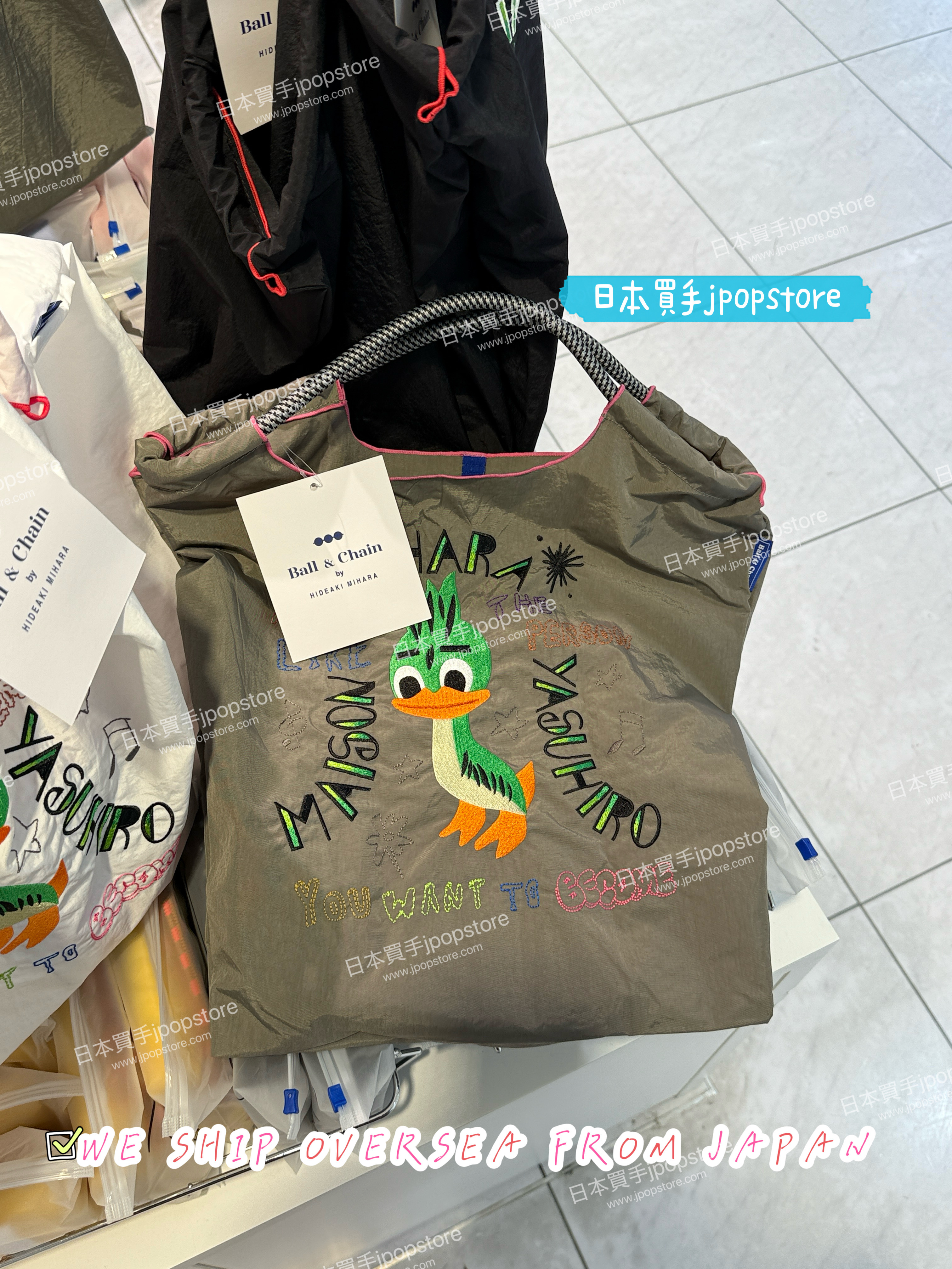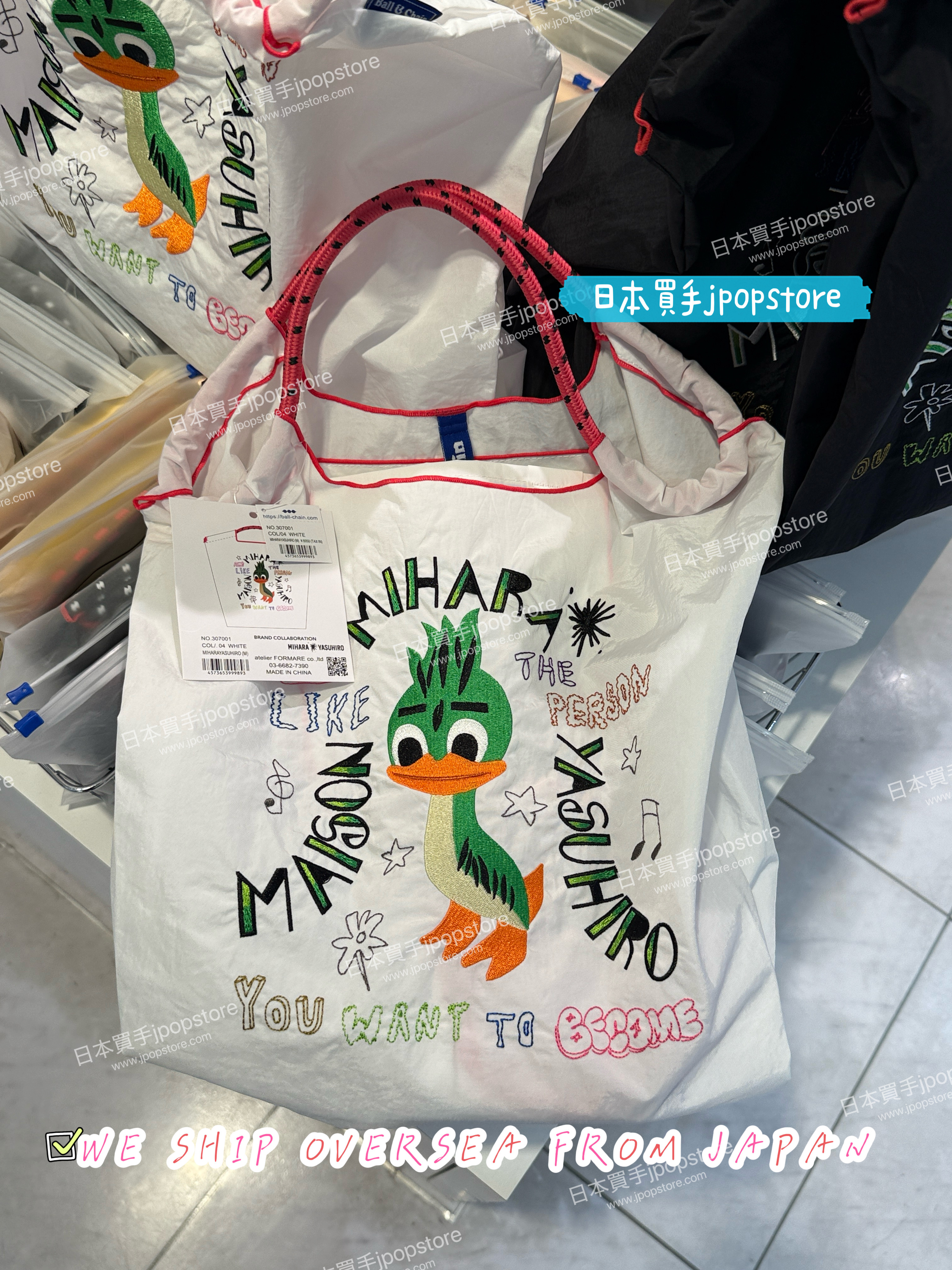 MIHARA Yasuhiro × Ball & Chain 聯名設計,獨家刺繡小鴨圖案,標語「Act like the person you want to become」正能量滿滿!輕便可摺疊,容量大,適合日常或旅遊使用。