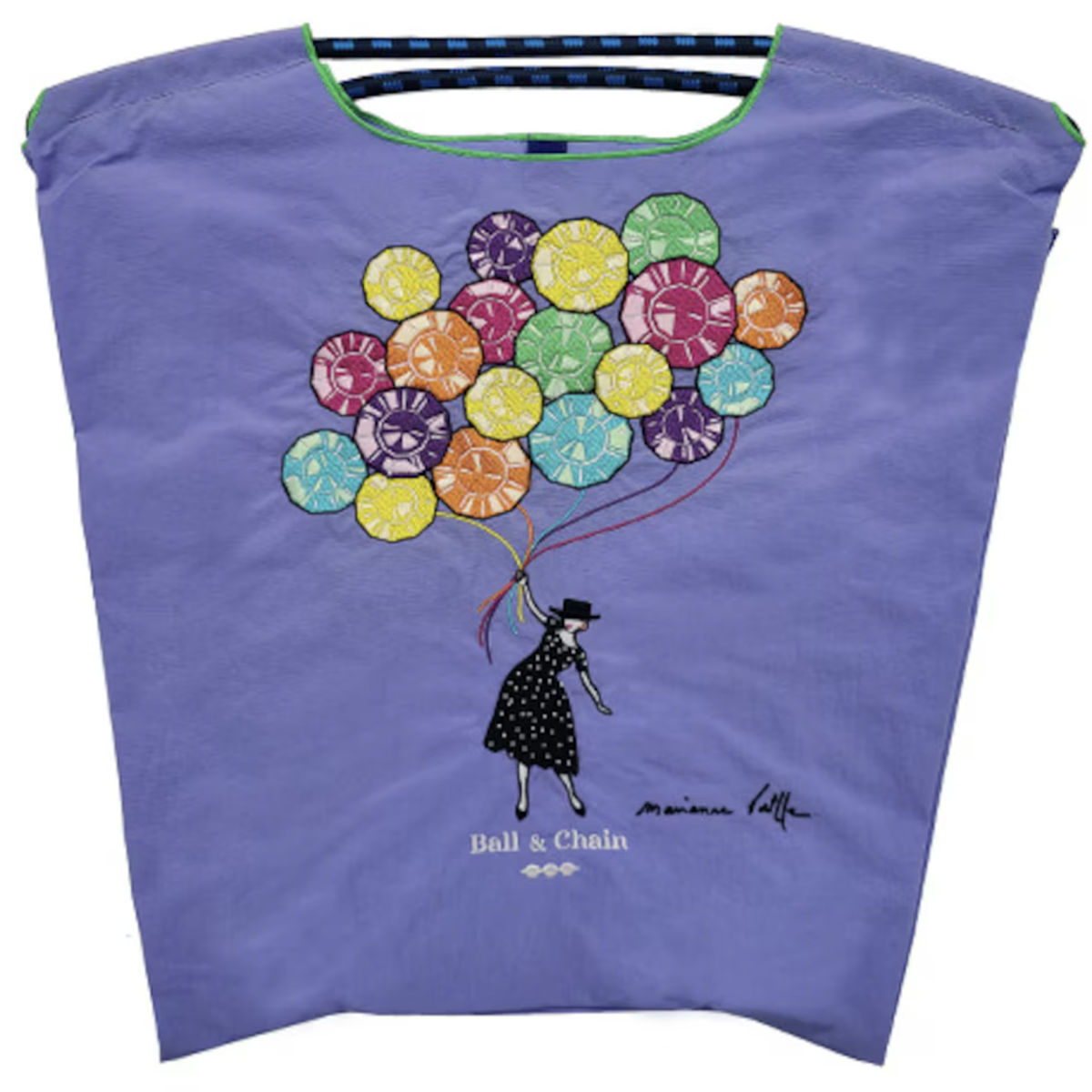 人氣品牌 BALL & CHAIN 帶來一款極具藝術感的設計系列「Le Balloon」,主角 Maianne 身穿復古裙裝,手牽著繽紛的氣球緩緩升空。圖案以高密度刺繍呈現,色彩鮮明立體,結合品牌一貫輕巧、可摺疊、環保又時尚的實用機能,無論日常使用或作為送禮都非常出色。