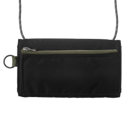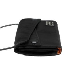 這款スリングパース(L)附有掛繩,方便掛在頸上或肩背使用。比 S 號更大容量,能收納 6.7 吋(如 iPhone 14 Plus 以下)的智慧型手機。內層配置豐富,方便收納紙幣、卡片、小物等;外層另設有拉鍊口袋,加強使用便利性。