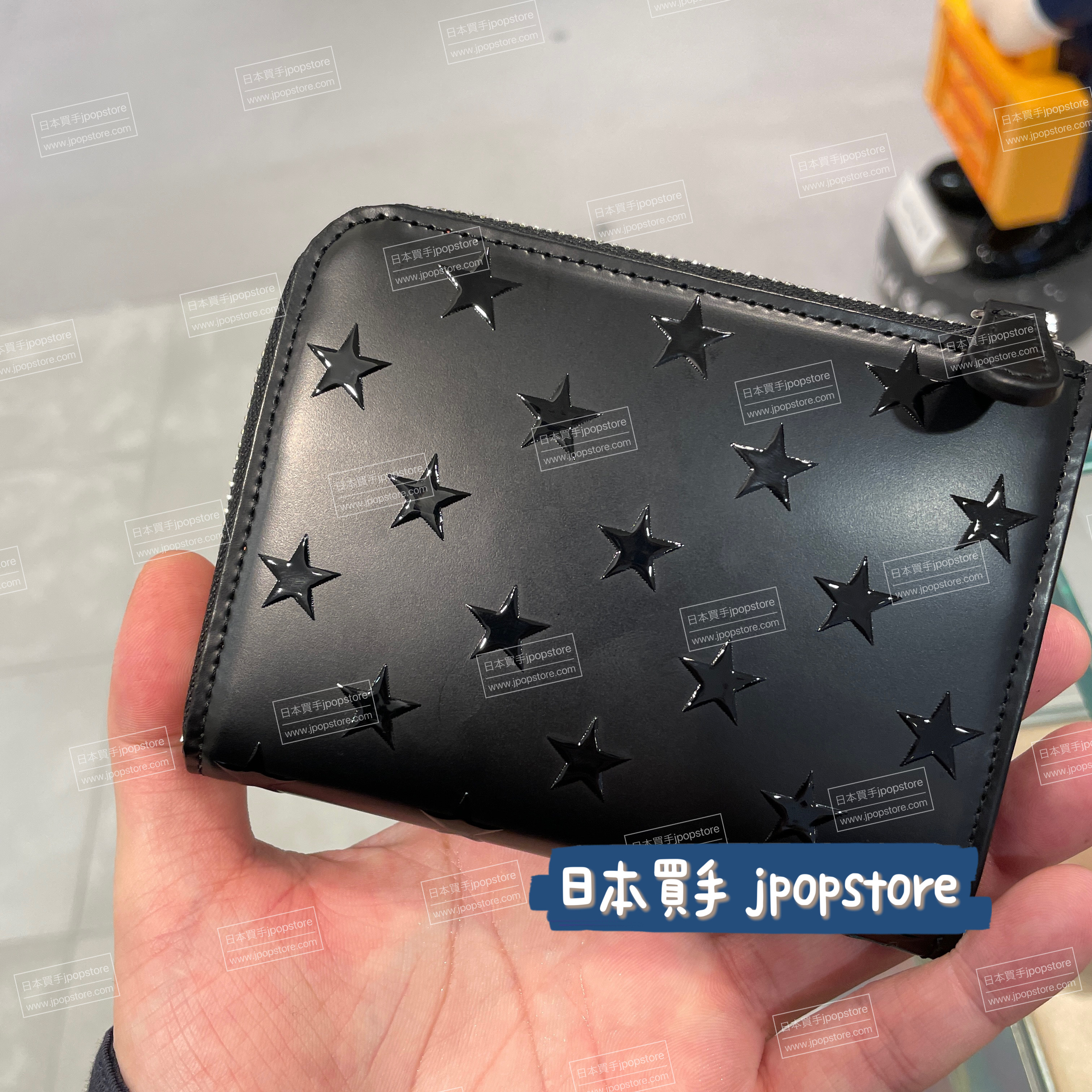 星星壓紋玻璃牛革多用途短銀包 / Embossed star pattern multi-wallet in glossy leather