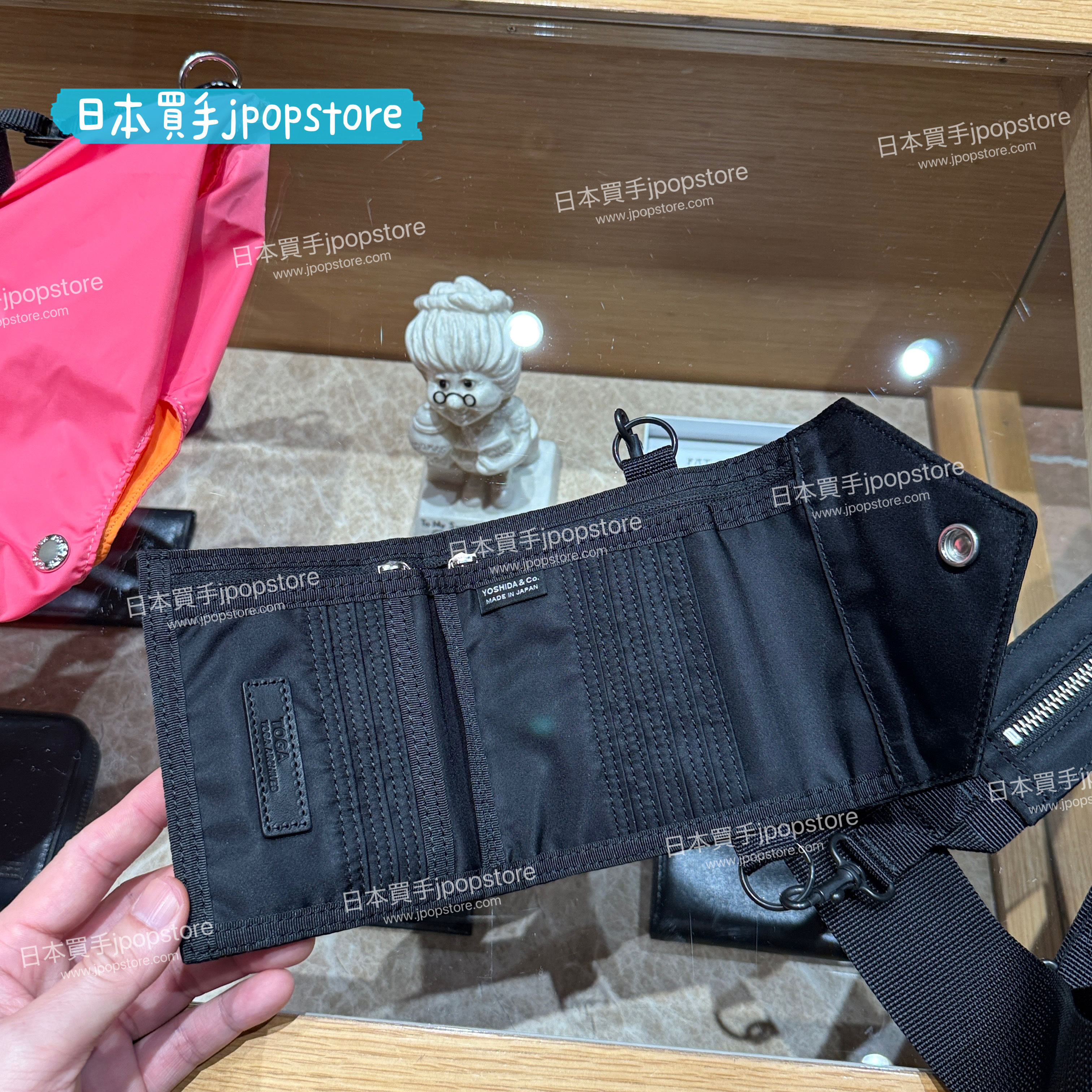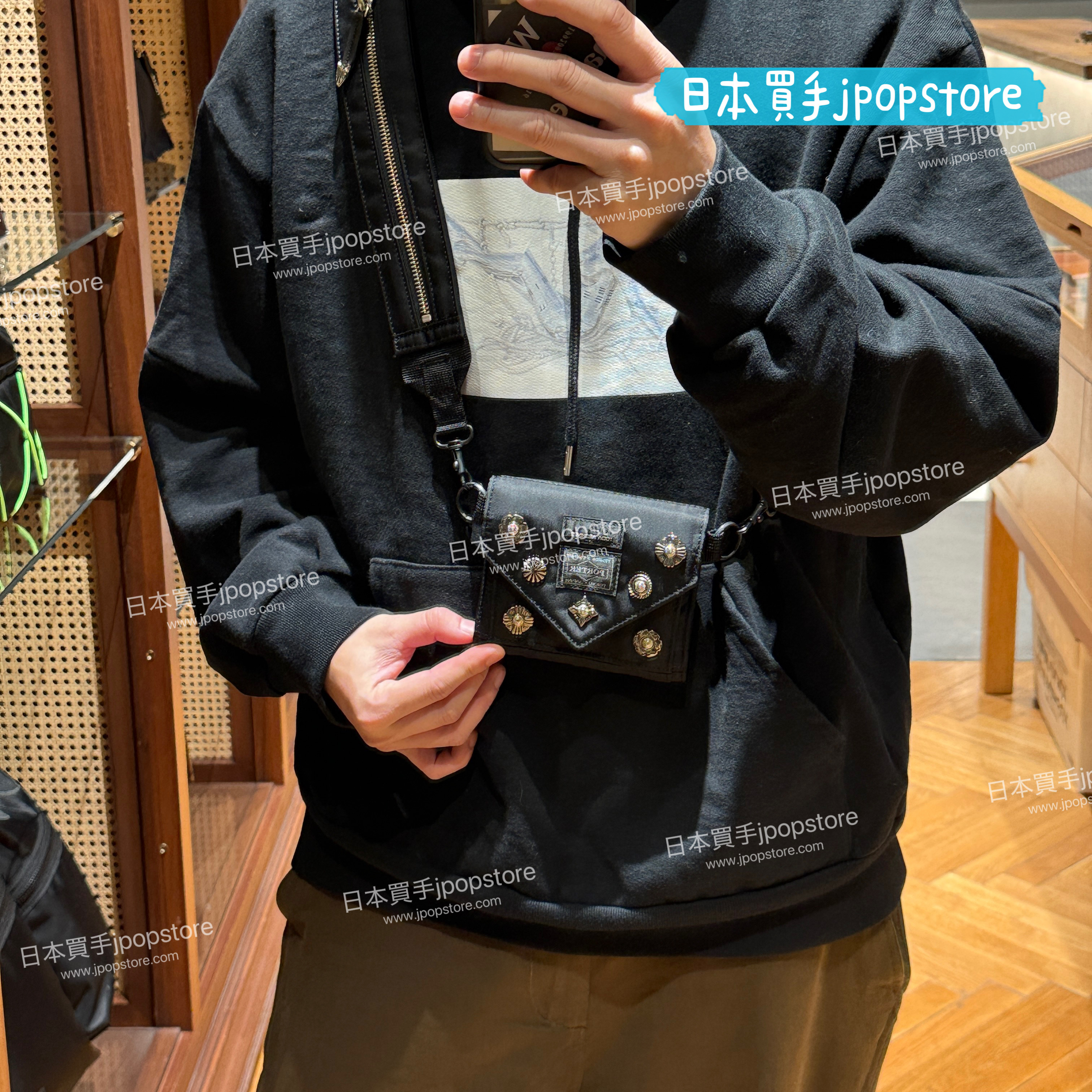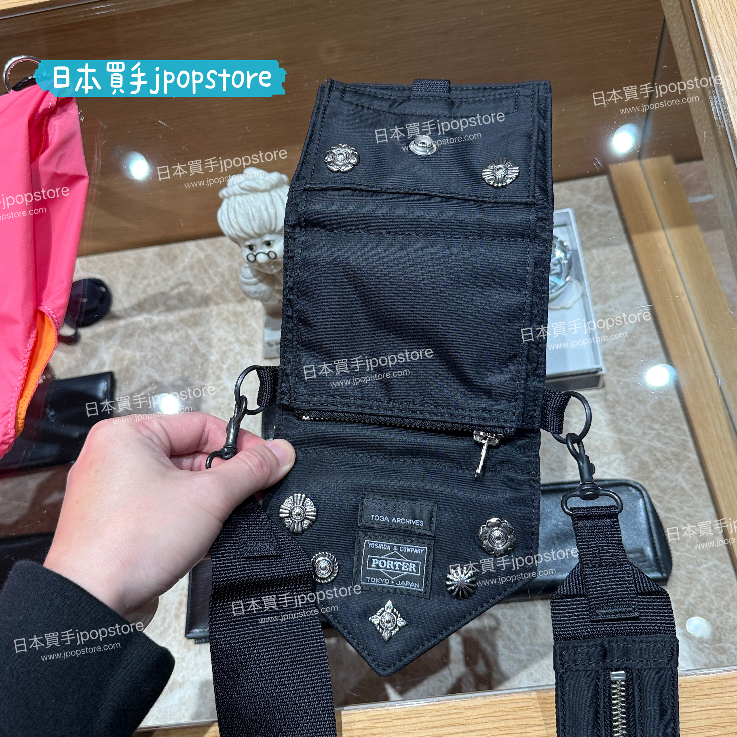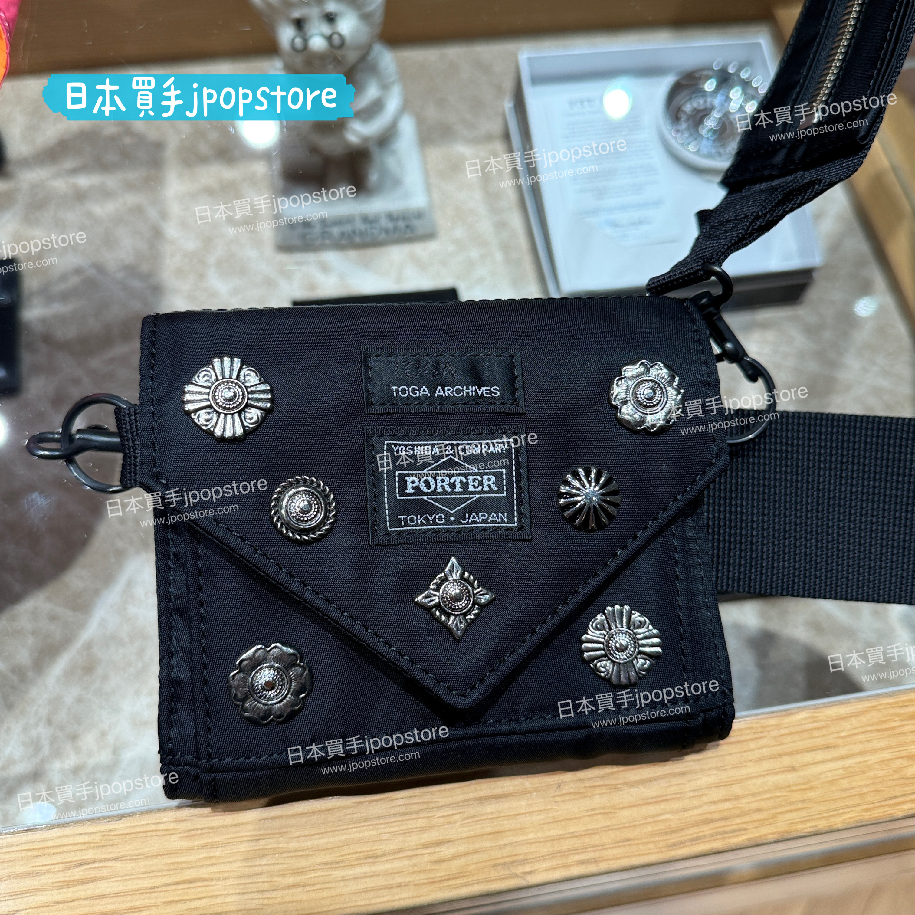 這款 TOGA × PORTER Shoulder Wallet,以 TOGA 代表性的 金屬コンチョ(飾釦) 點綴外觀,個性鮮明又富有存在感。肩帶上配置拉鏈口袋,放入物品後會自然擴展容量,可收納手機等隨身小物。肩帶可拆卸,能作為 肩背錢包 / 單獨錢包 兩用,是旅遊與日常都非常實用的設計款。