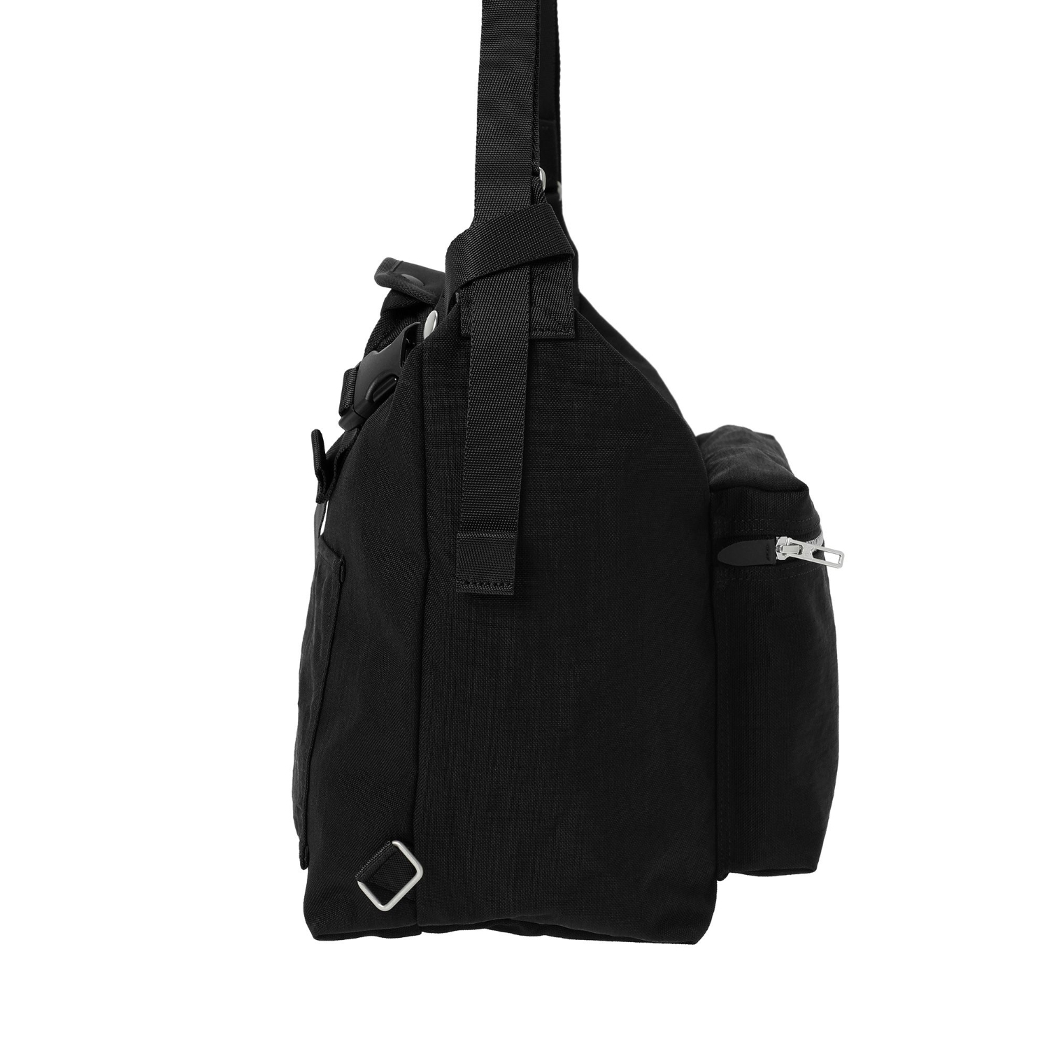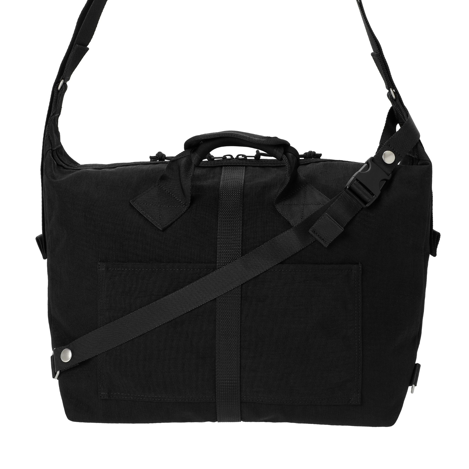 手挽部分採用柔軟緩衝材質,握感舒適。此款肩背包附有可拆式副肩帶,可於騎單車時像 Messenger Bag 一樣固定身體,提升穩定性。包身容量大,可放入衣物等較大物品,是通勤與短途旅行的理想尺寸。
