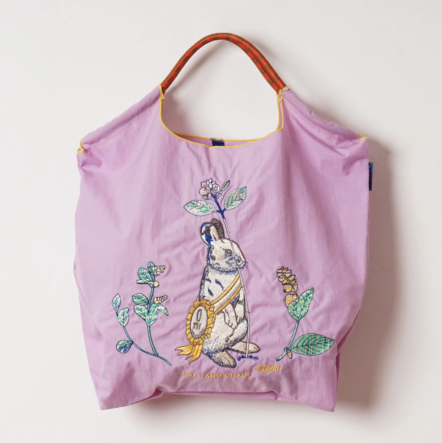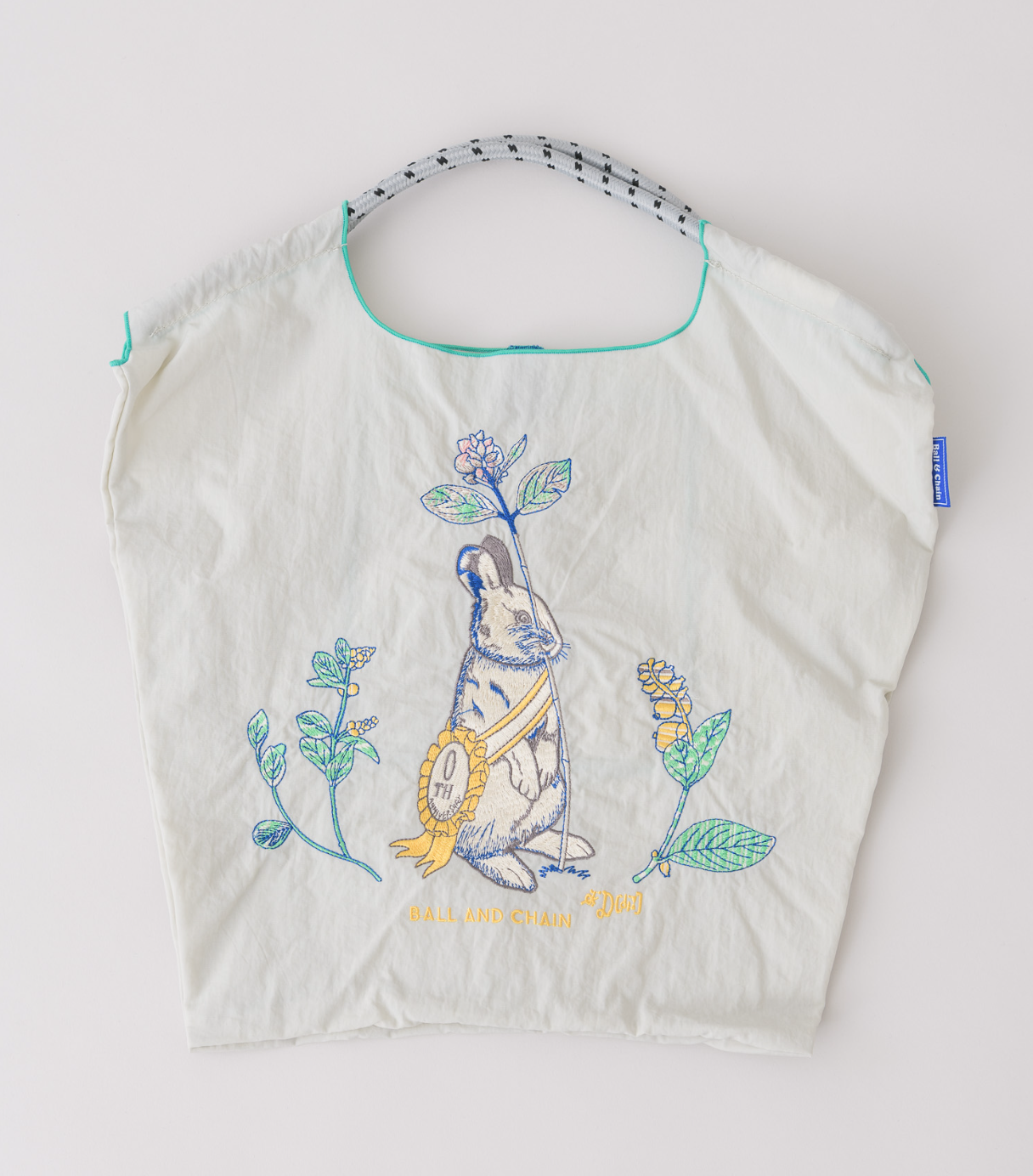 來自日本的人氣環保袋品牌 Ball & Chain,此款「D.rabbit」以栩栩如生的兔子刺繡為主角,結合春日植物元素,療癒又時尚。