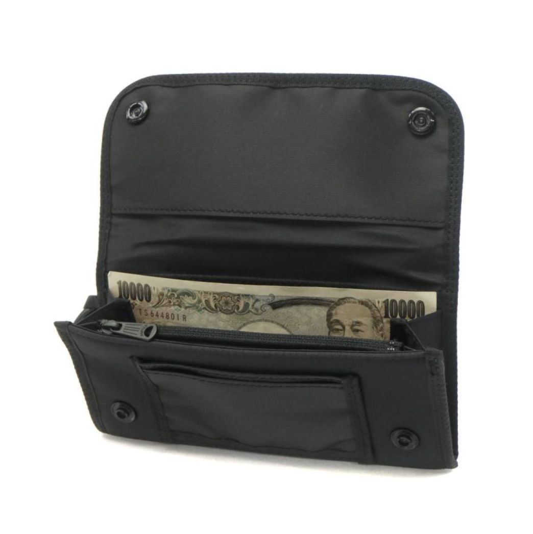內部配置清晰,卡片、鈔票、收據、硬幣等均有專屬收納位置,兼具功能性與收納力。極輕巧僅重約90g,外出活動毫無負擔。選用防潑水尼龍材質,結合耐用壓扣開合設計,是兼顧造型與實用的戶外風格錢包首選。