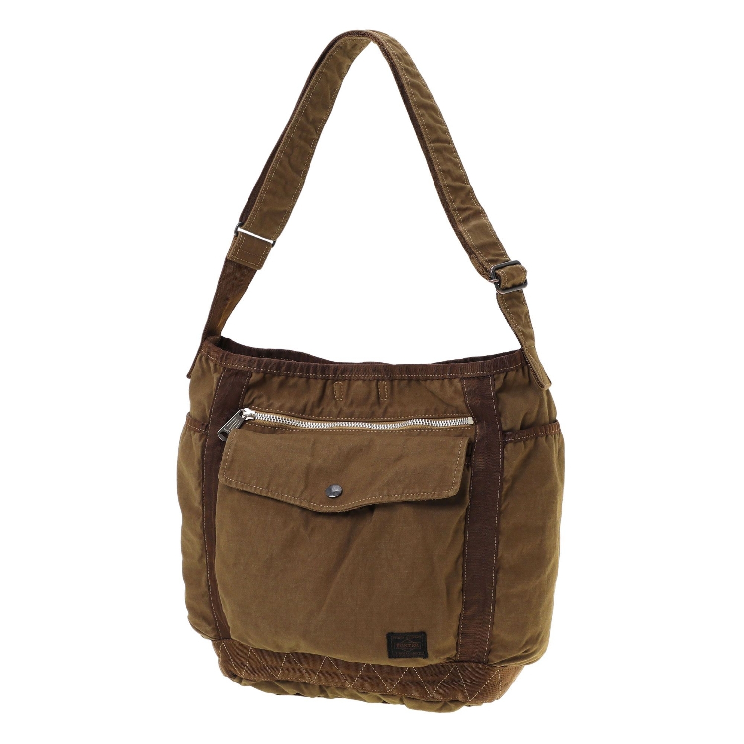 PORTER CRAG 為吉田包的日系製品染系列,使用尼龍與棉混紡織成的高密度斜紋布,結合倉敷地區職人的染色技術,展現自然皺感與豐富層次的色調,每件成品皆獨一無二。