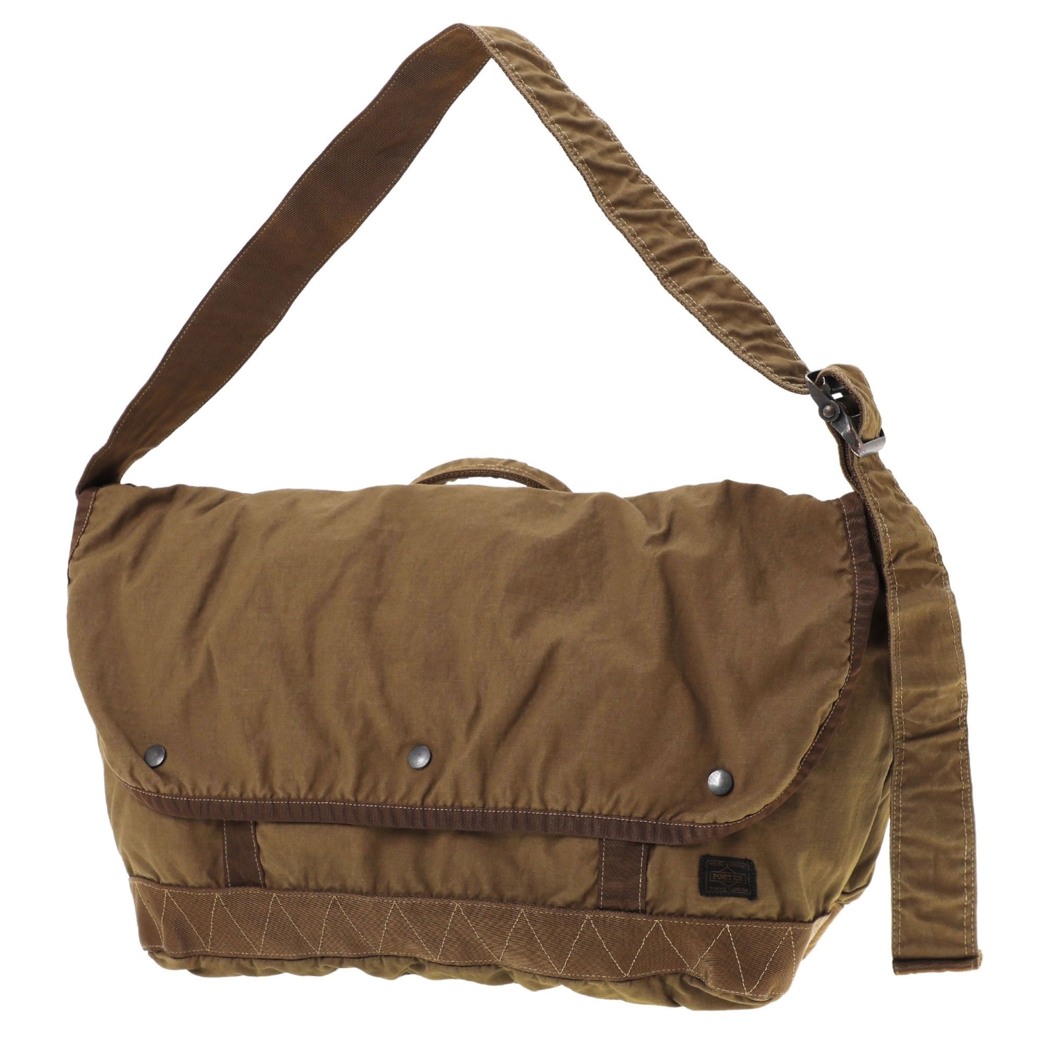 PORTER CRAG 系列郵差包,大容量設計搭配多口袋收納,適合日常與旅行使用。特色製品染技術,質感獨特有型。