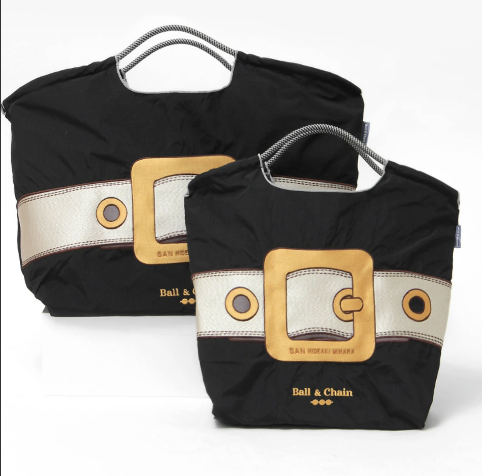 經典皮帶釦刺繍設計,高質感日系風格手提袋,具防潑水功能,折疊後輕巧方便攜帶。