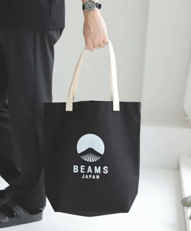 此款為 BEAMS JAPAN 與日本包袋品牌 evergreen works 合作的別注設計。以「富士山」為靈感的經典 LOGO,加上自然配色與原色手把,簡約又具日式風格。