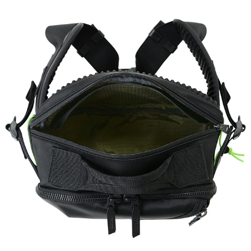 背面使用的立方體眼罩是吉田包在世界上首次採用的包包材料。這種材料是一種特殊的立體蜂窩結構,在“透氣性”,“減震性”,“速幹性”方面非常出色,因此被用於需要醫療和運動等先進技術的現場。這款三維多功能面料可以減輕包包與身體接觸部分的壓迫,減少血液循環的障礙,從而減輕長時間背著帶來的疲勞感和不適感。