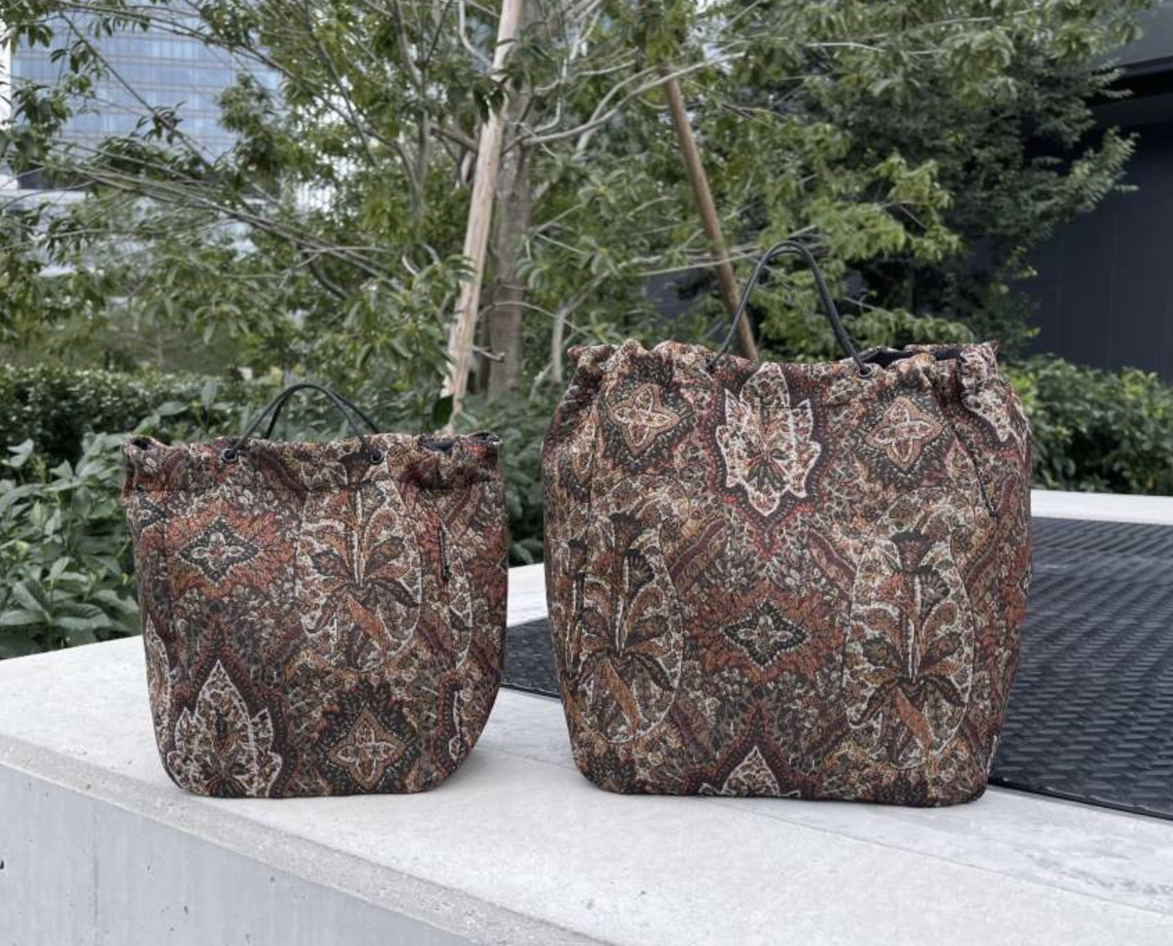 BAG’n’NOUN 人氣定番款「SPINDLE BAG」推出全新 ゴブラン織花布(GOBELIN)版本,以厚實高密度的織布結合立體束口設計,呈現出秋冬特有的成熟質感。