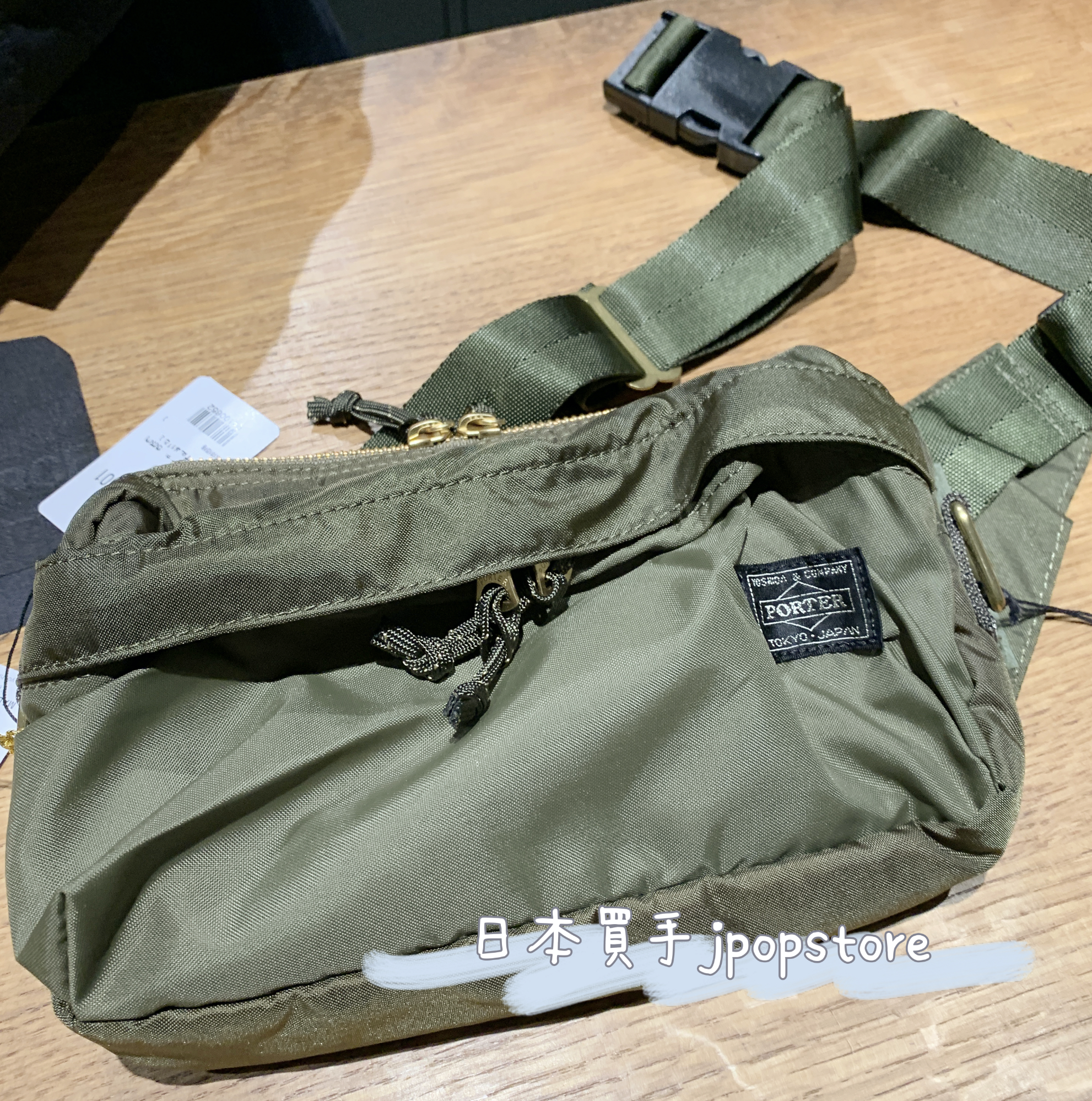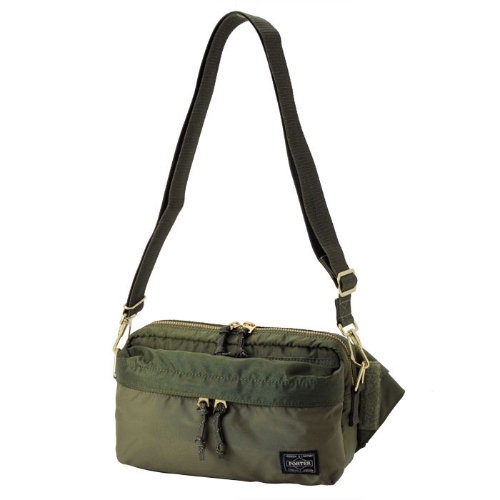 PORTER FORCE 多功能腰包兼單肩包,日本製軍事風設計,橙色絎縫內裡,內附可拆袋,旅行通勤皆宜。