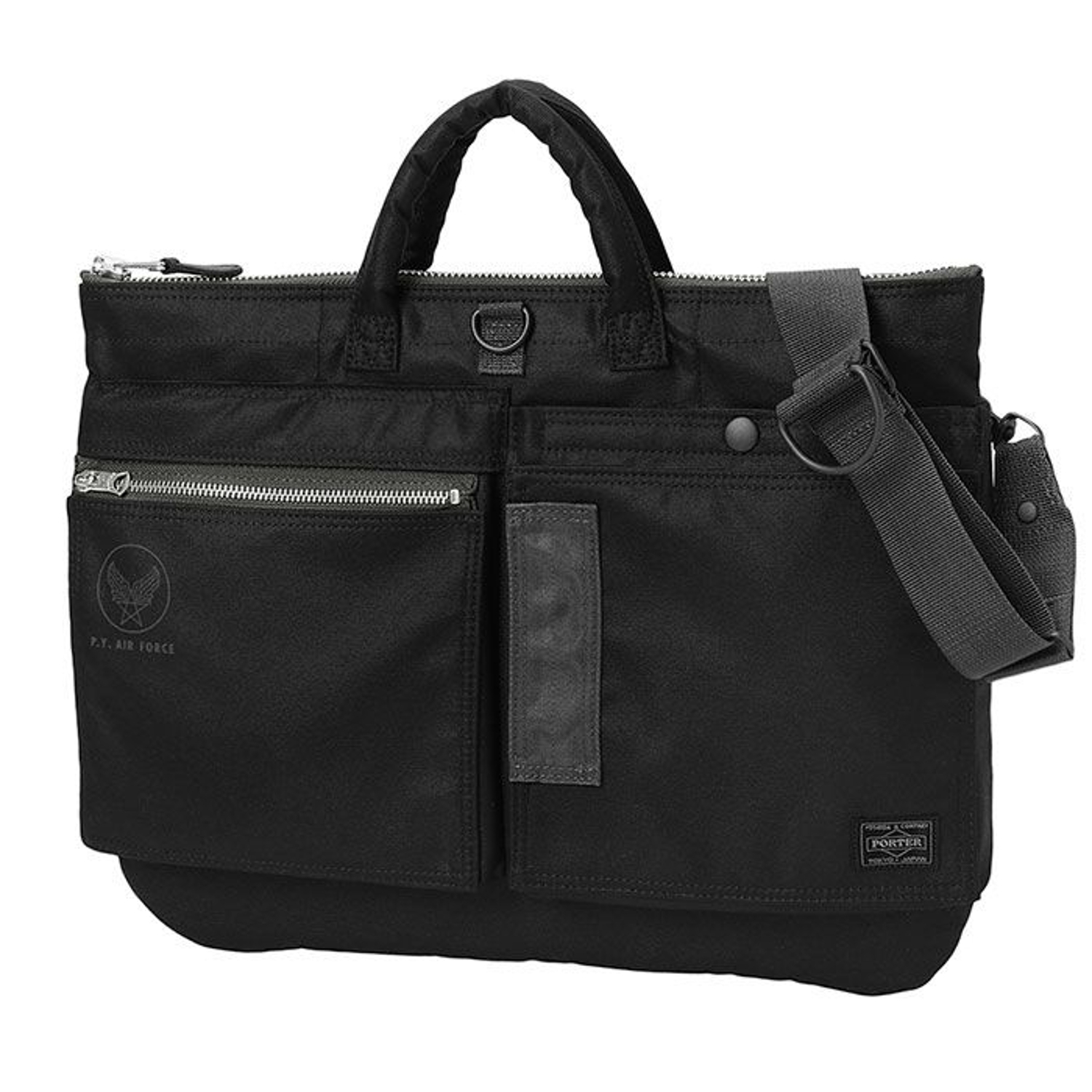 「PORTER FLYING ACE」系列以 1950 年代初期 U.S. AIR FORCE 飛行服 FLYING SUIT TYPE K-2A 為靈感,結合日本精湛工藝打造而成。採用高密度光澤尼龍牛津布料(表面經シレー加工、內層貼合尼龍針織),展現獨特質感與高耐久性。