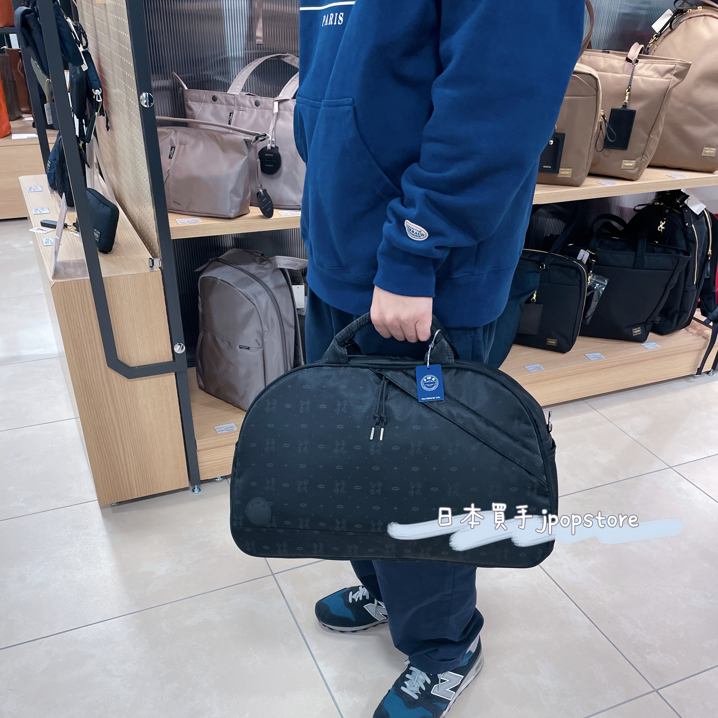 本款 2WAY Boston Bag 為其首個 MONOGRAM 系列商品,使用高密度光澤尼龍織成獨家 POTR logo 圖騰,並經棉質夾層處理,兼具柔韌與輕盈。