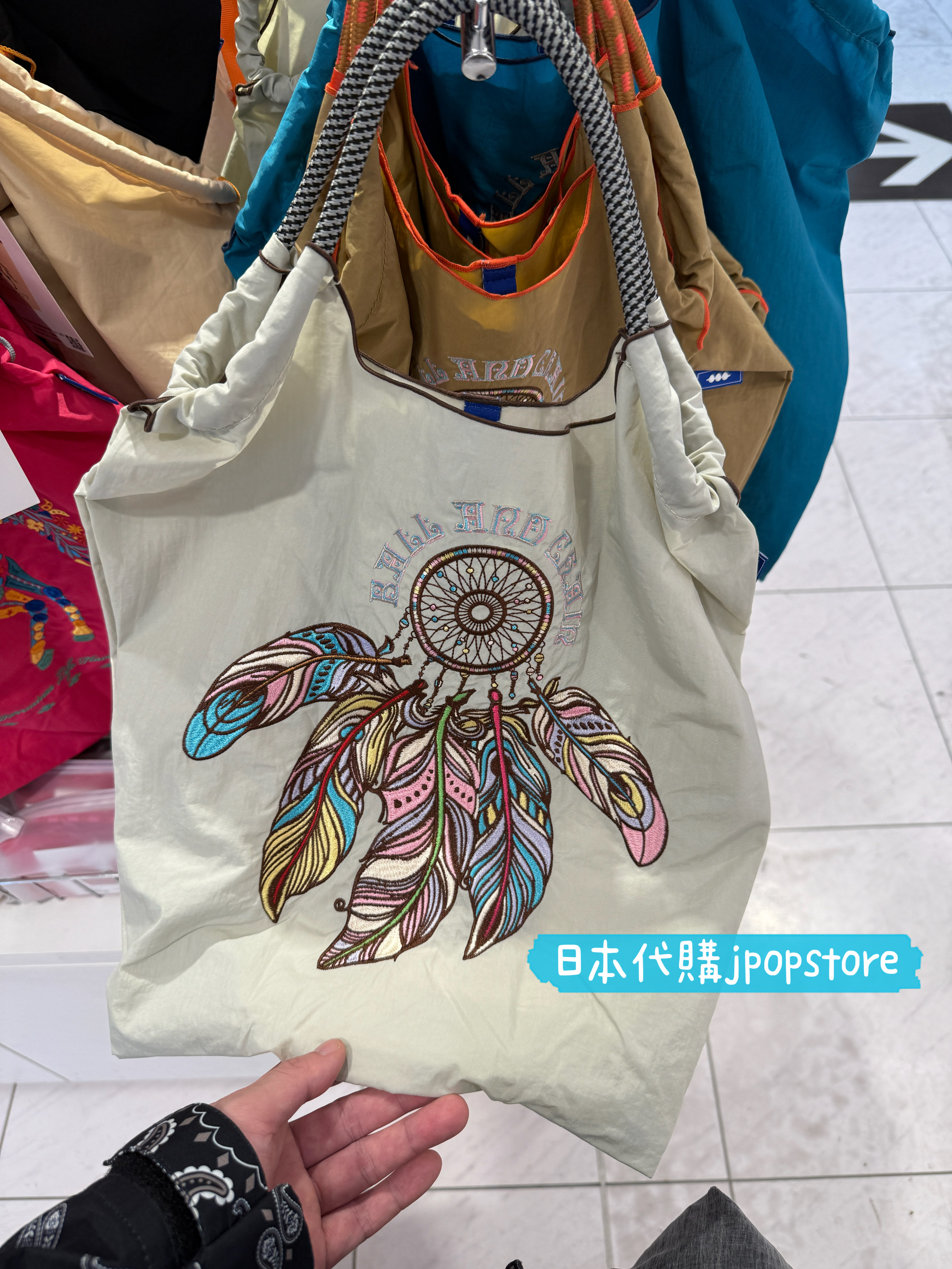 以夢捕手為靈感的刺繡環保袋,色彩鮮明、設計感十足。可摺疊收納,輕巧實用,適合日常外出、購物使用。日本設計,時尚與功能兼具。