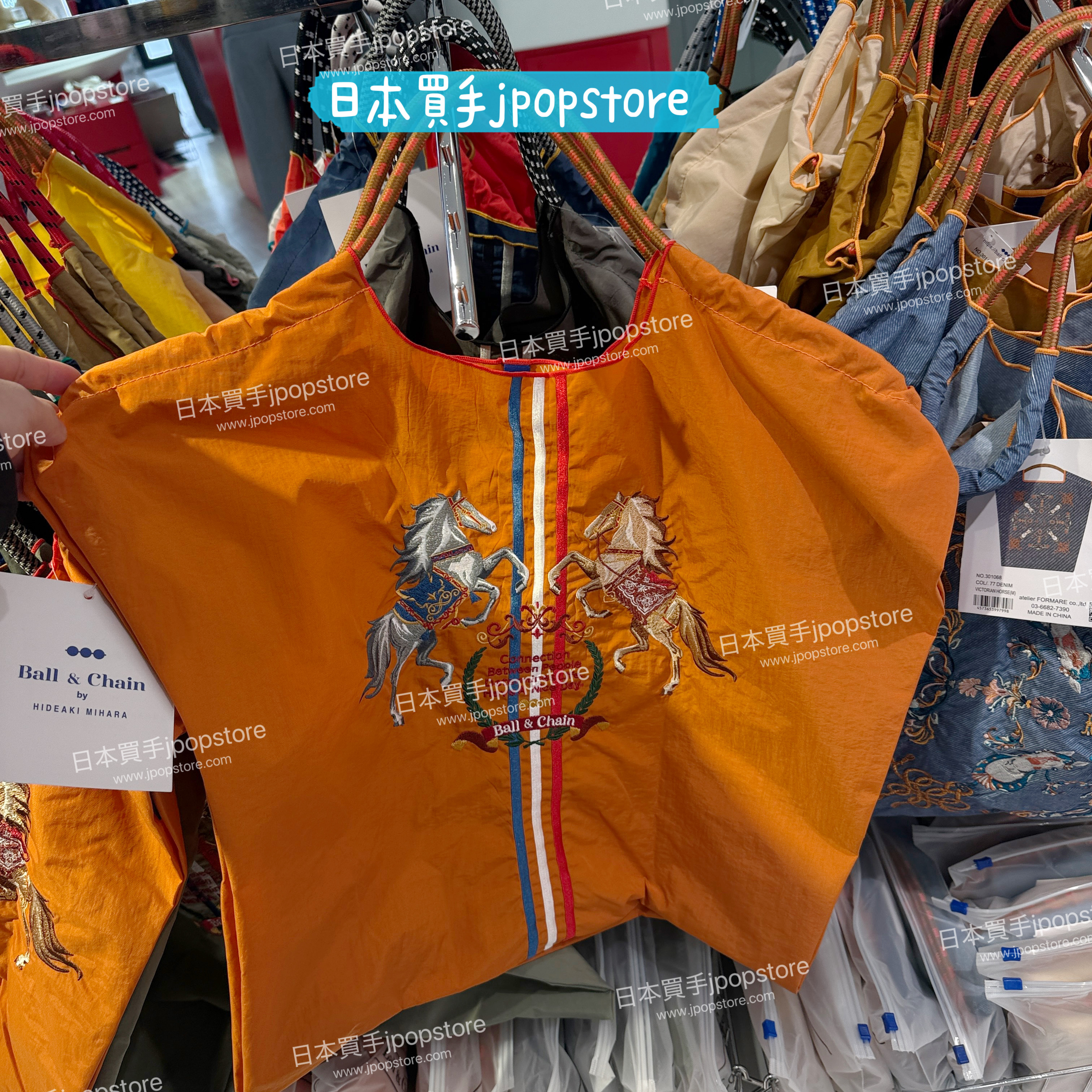 Ball & Chain 刺繡環保袋 Two Horses|可折疊購物袋|橙色/灰色|M/L 尺寸|日本人氣品牌