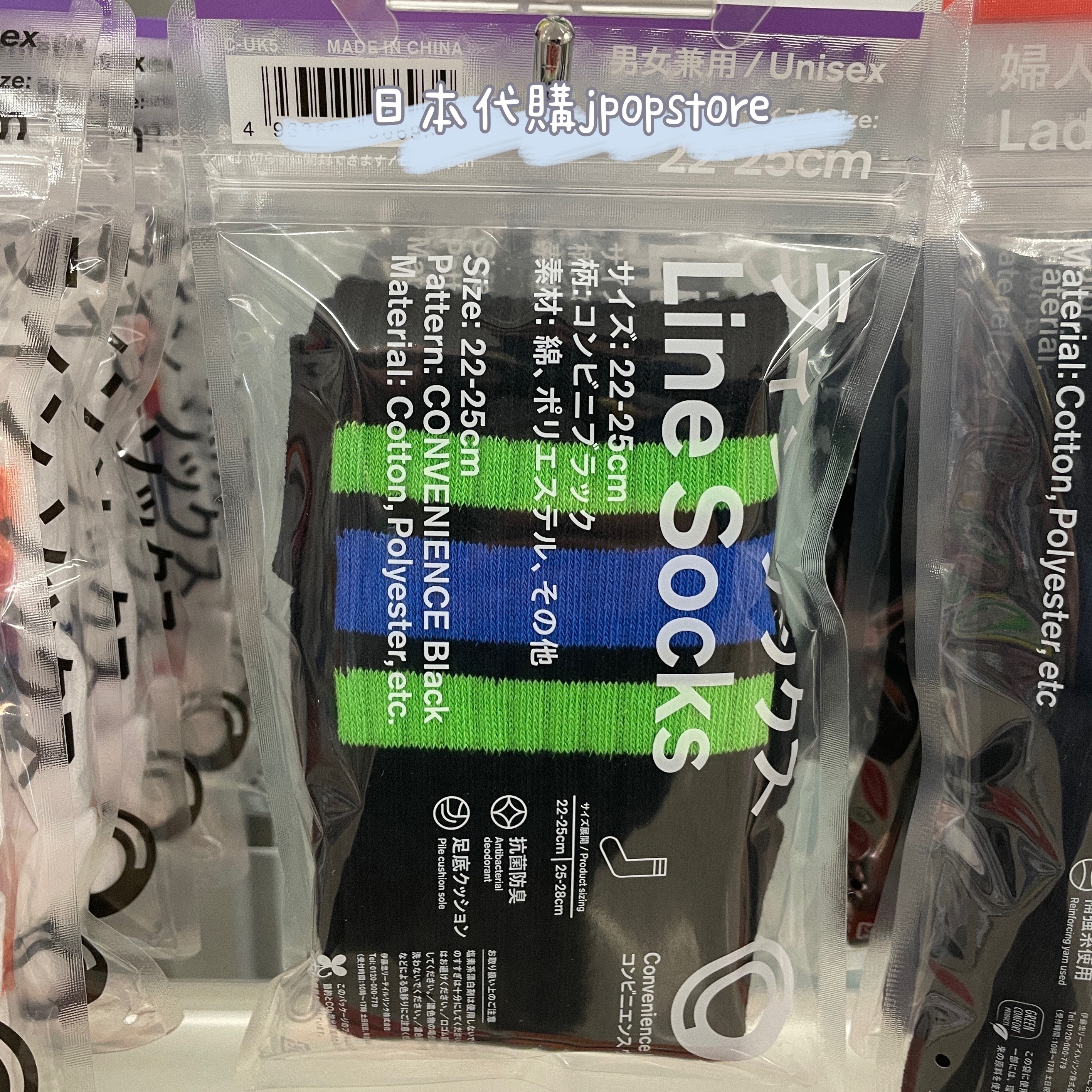 日本 FamilyMart 經典黑色條紋襪,簡約潮流風設計,抗菌防臭處理,男女皆宜,舒適耐穿。