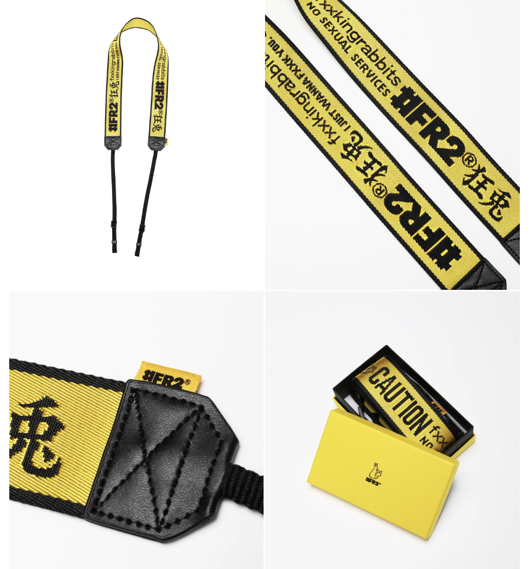 FR2 CAUTION 主題相機帶,潮流風格滿分。長度約 133cm,適用各款相機與斜背搭配,拍攝與穿搭兼具。