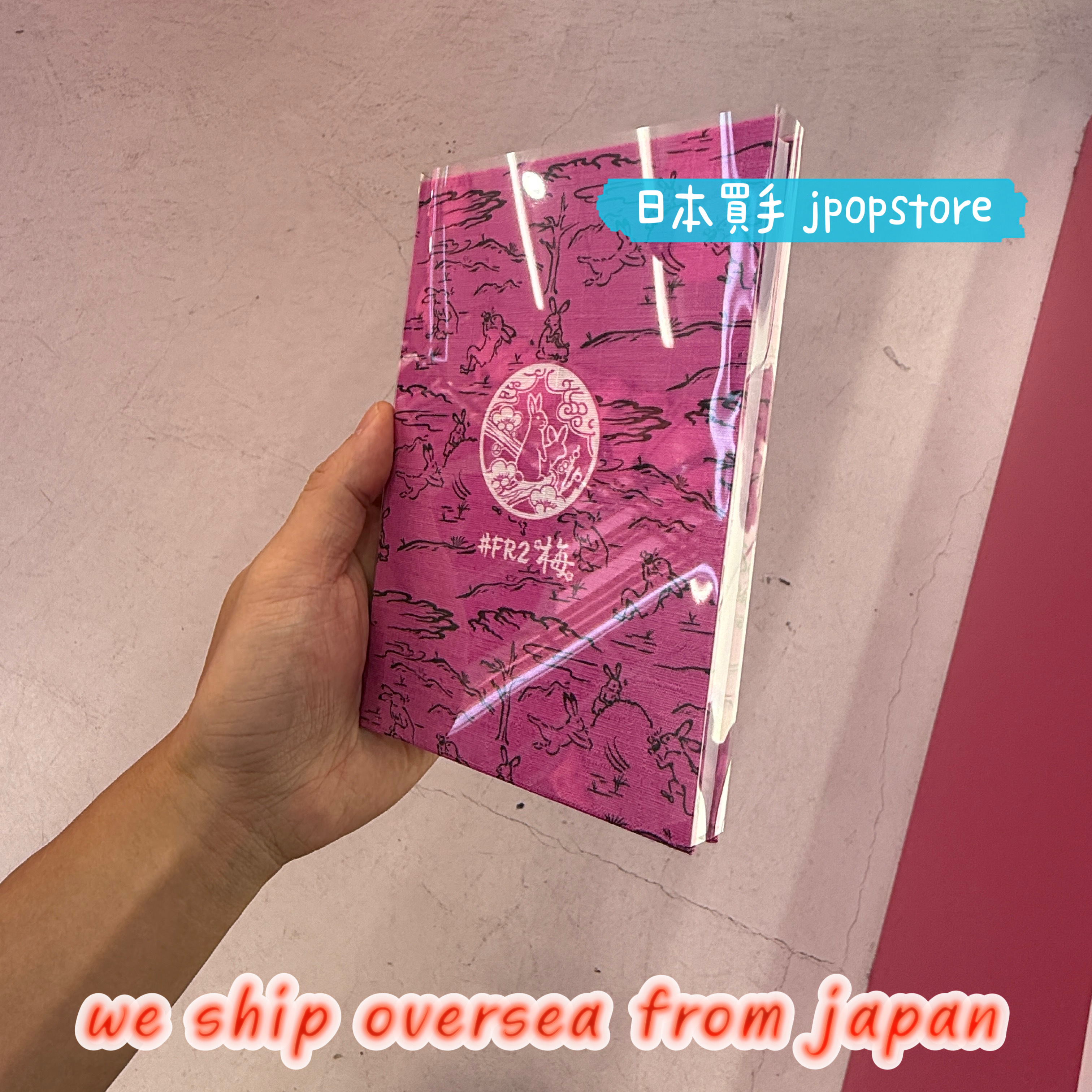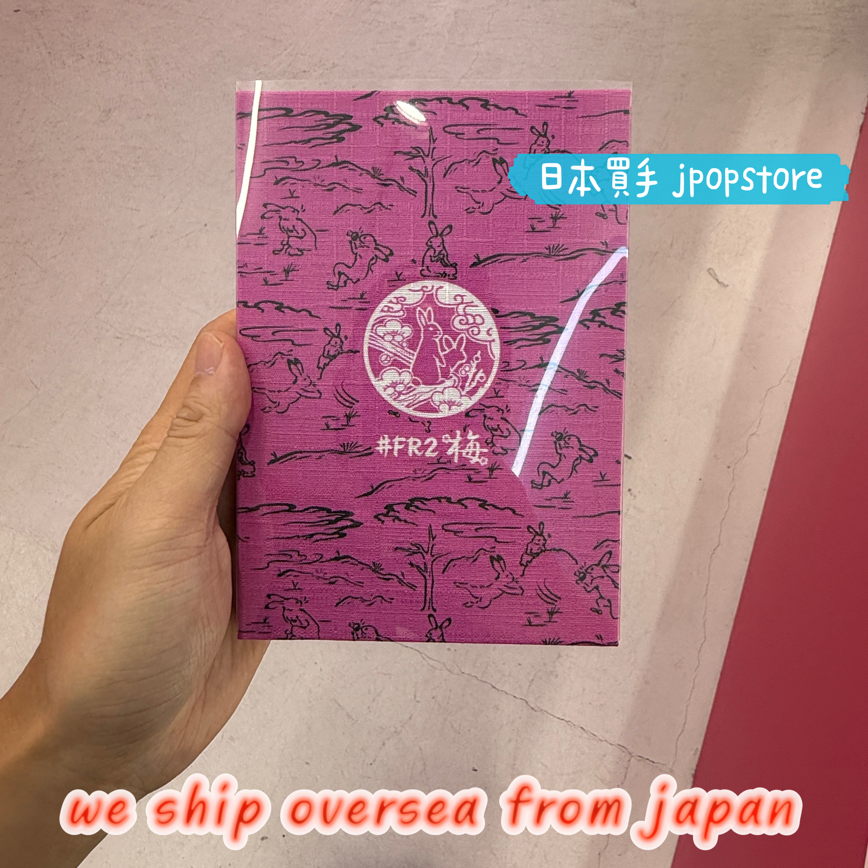 來自 FR2 梅限定系列的特製御朱印帳,以傳統日式風景與兔子圖案結合,呈現出古典與潮流兼具的設計風格。