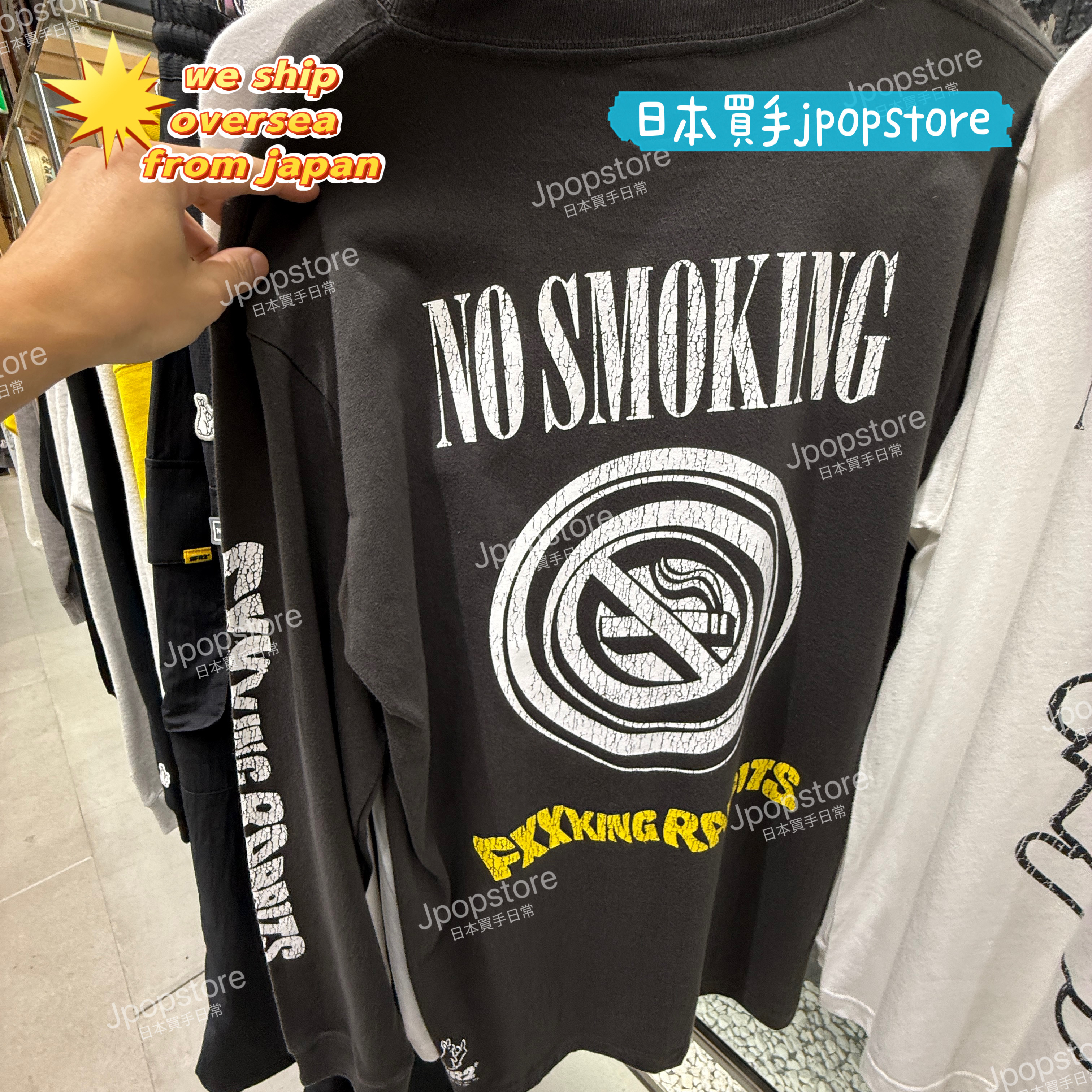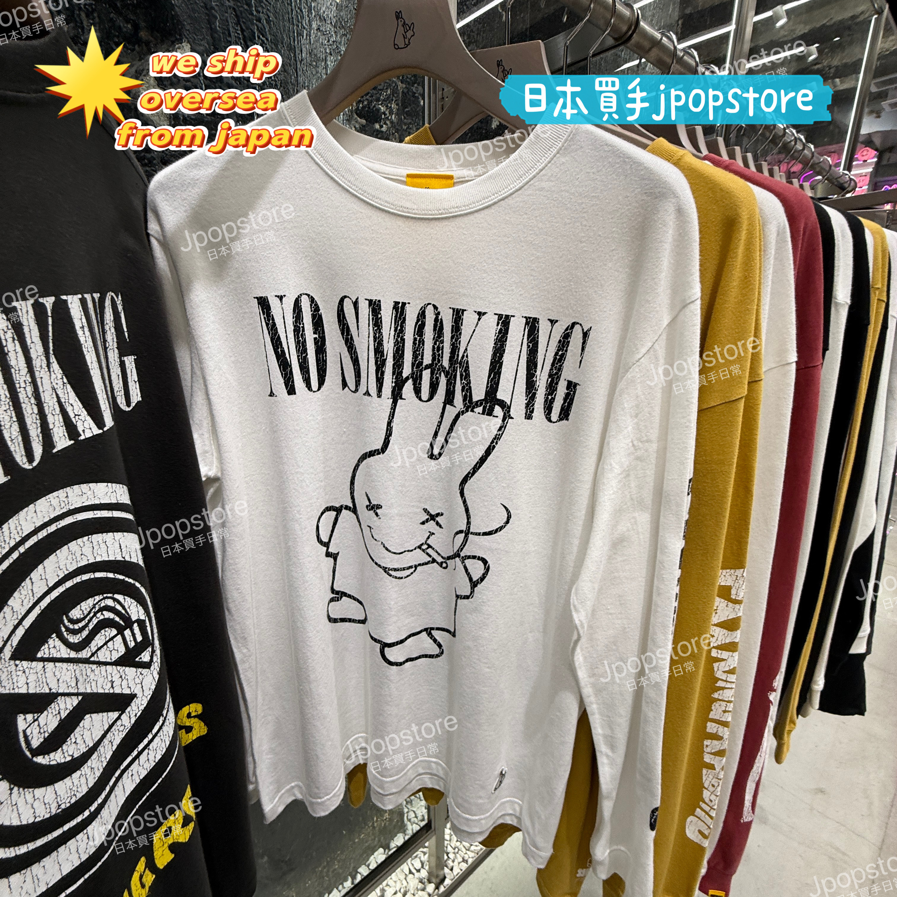 Streetwear long sleeve T-shirt with NO SMOKING message / 背後禁煙圖案 + 正面兔子插畫,袖口細節滿滿。