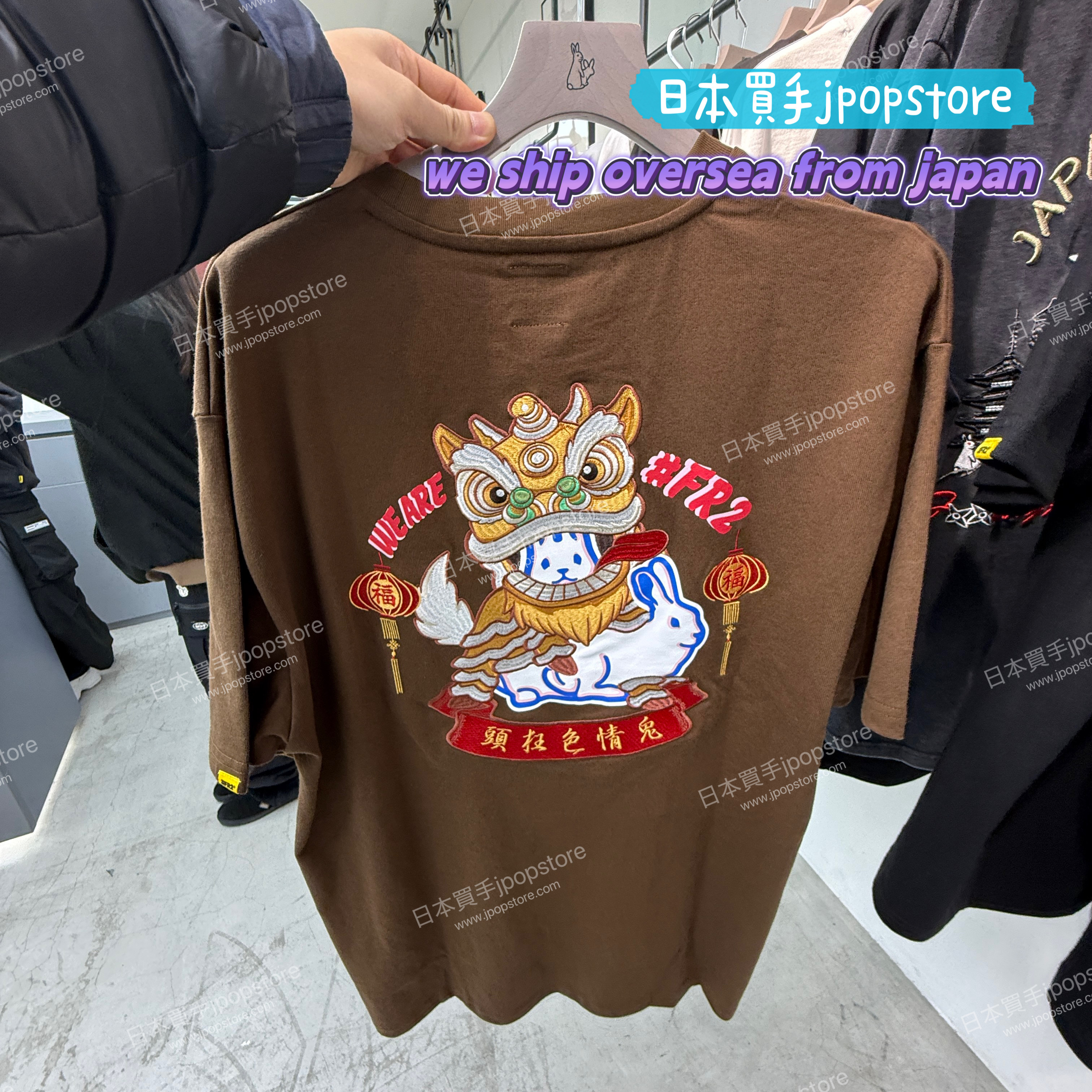 配合 2026 年 Chinese New Year(兔年),FR2 推出限定 Lunar 系列,上衣以迎春意象為主題,將舞獅、兔子與吉祥元素融合,背面採用 印刷+精緻刺繡 雙重工藝呈現,層次感十足。