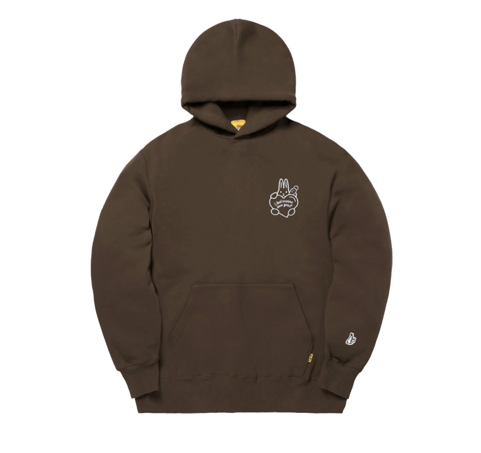 POP 風格兔子愛心圖案連帽衛衣,背面大圖印花+前胸刺繡設計,內裡刷毛保暖,秋冬必備。