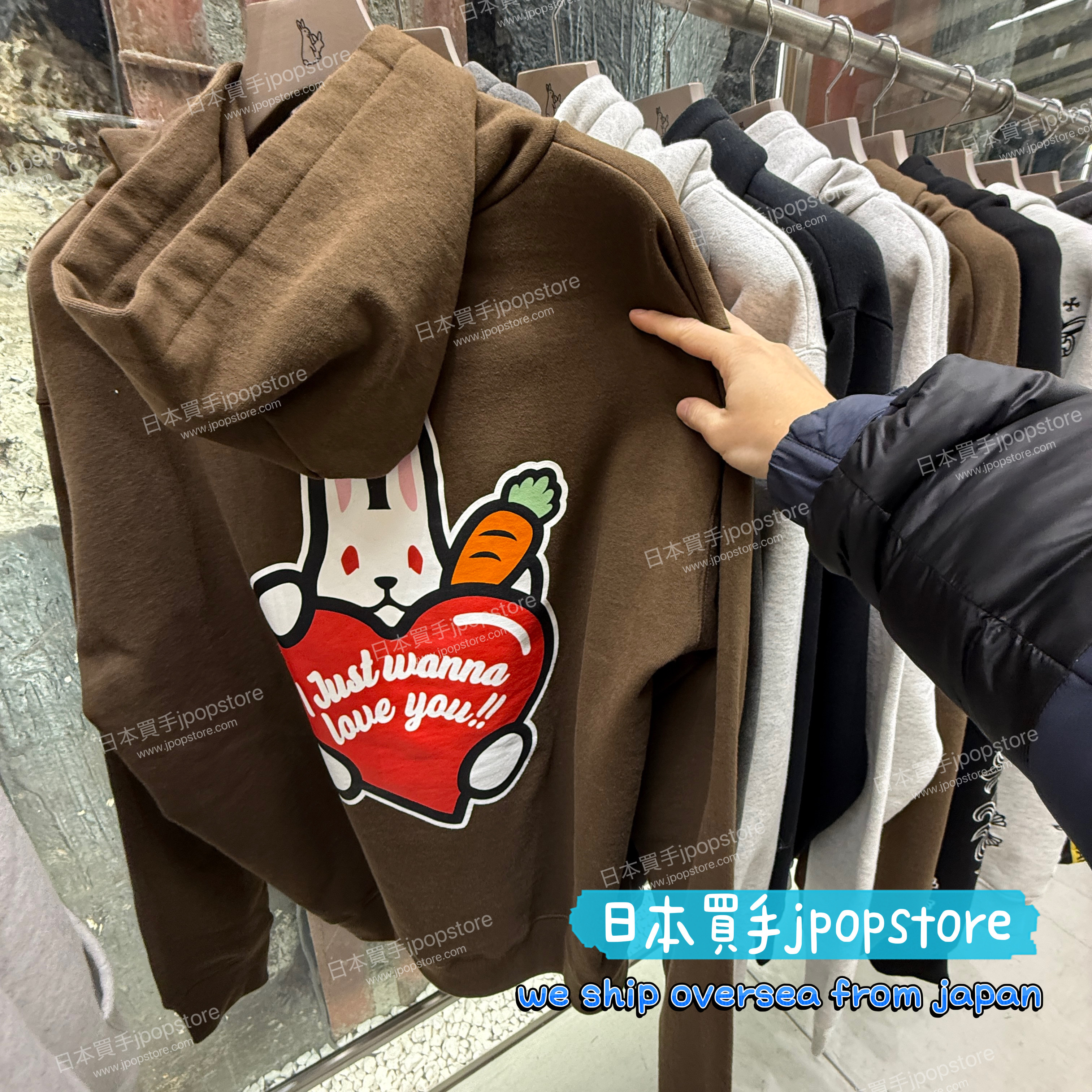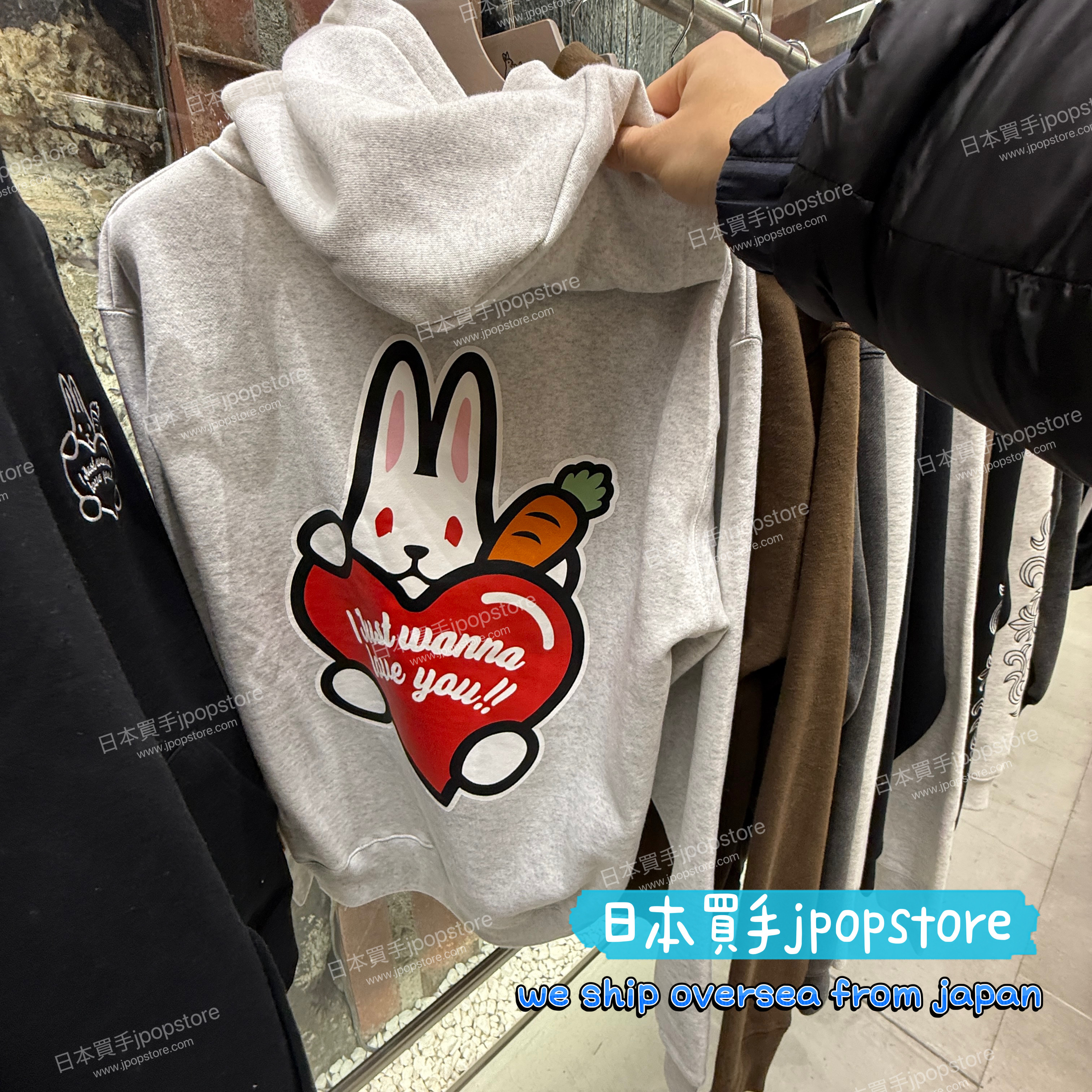 以 POP 風格呈現的可愛兔子愛心圖案作為主視覺,背面大尺寸圖像印花設計,配上「I Just Wanna Love You」訊息字樣,吸睛度滿分。