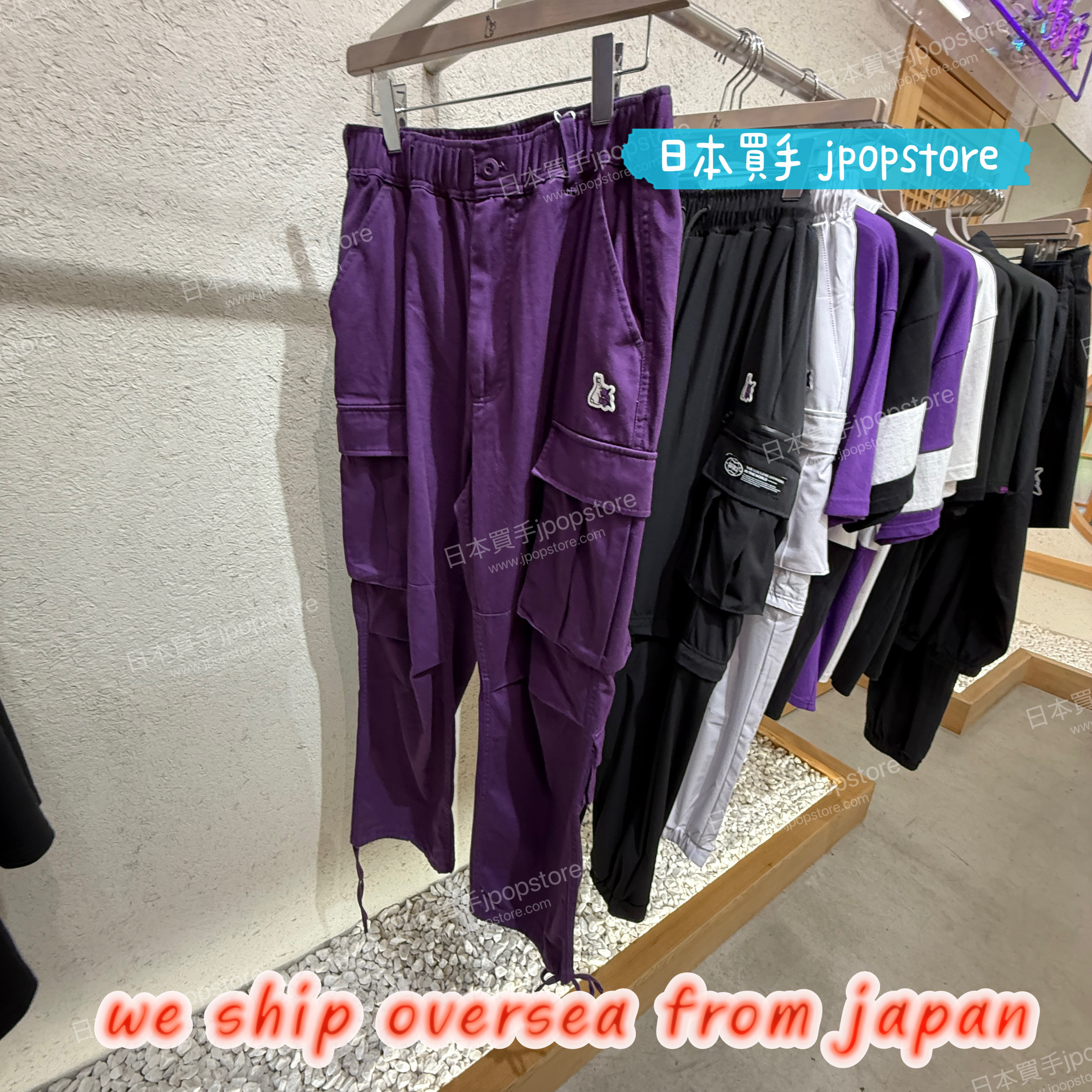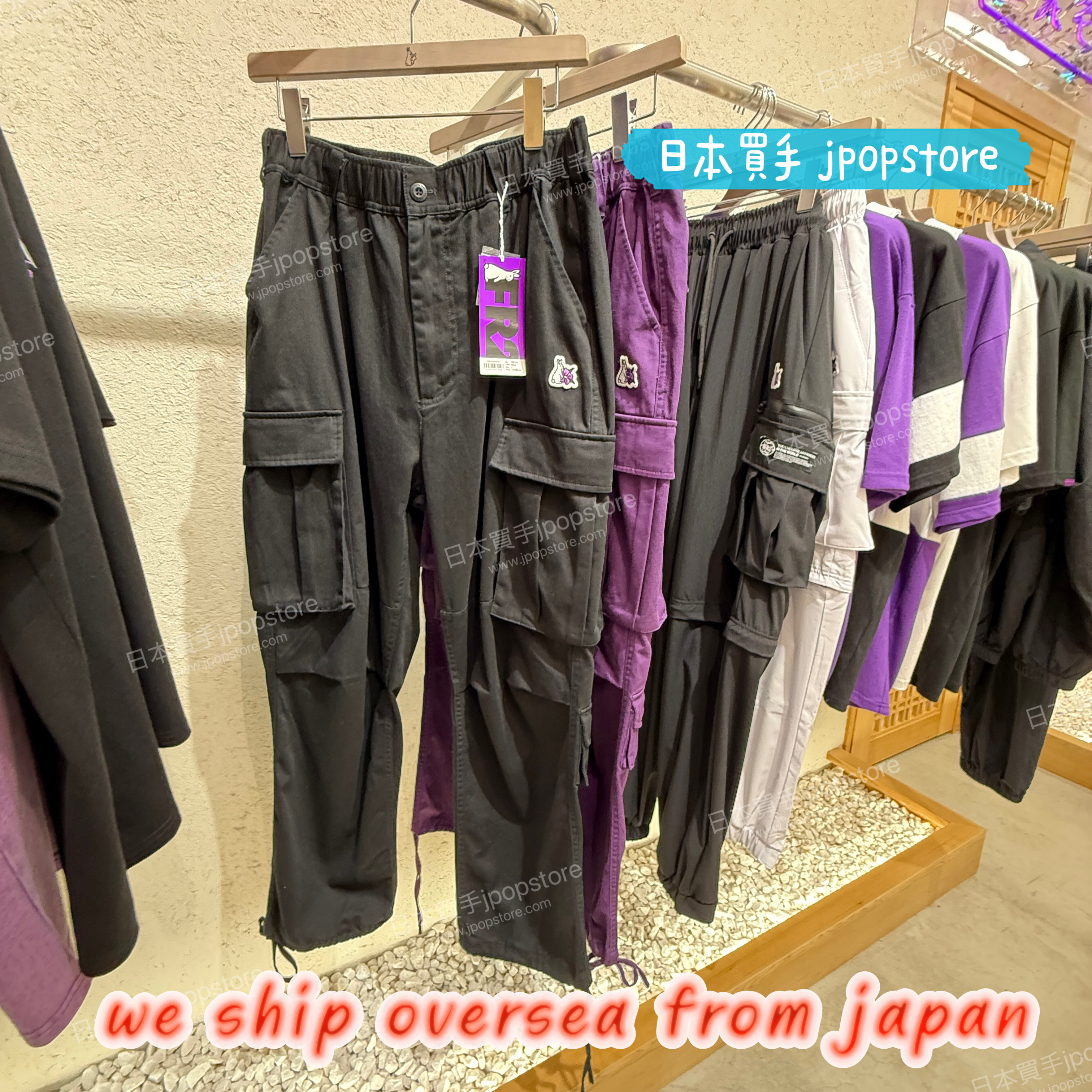 採用輕量耐用的 ripstop 面料,搭配側邊拉鍊口袋與可調式褲腳,機能風寬版剪裁設計。
