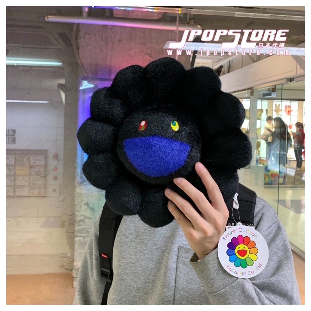 村上隆彩虹花系列中少見的全黑配色版本,神秘酷感風格獨特,絨毛柔軟,30cm 尺寸適合收藏或送禮,日本限定發售。