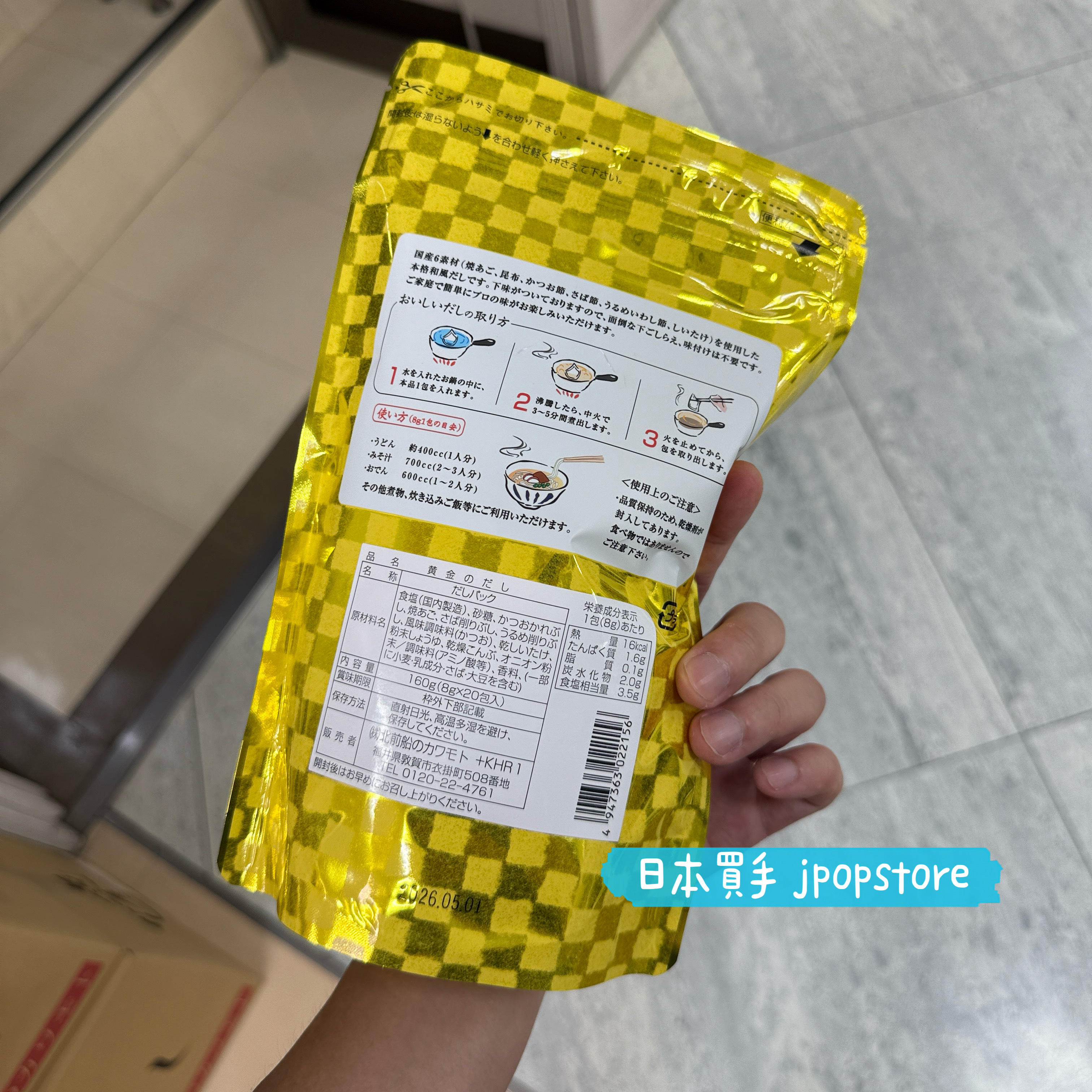 這款「黃金のだし」高湯包選用6種日本國產食材製成(鰹魚節、鯖魚節、烤飛魚、昆布、香菇、乾沙丁魚),完美調和出甘甜又濃郁的黃金比例。每包高湯包都為袋泡茶型式,使用方便,無需過濾。