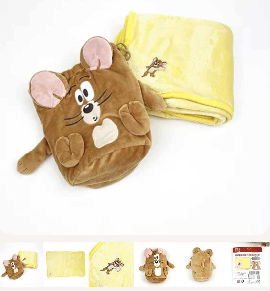 Jerry 造型可愛收納袋 + 保暖毛毯。 / Cute Jerry mascot pouch with warm blanket.