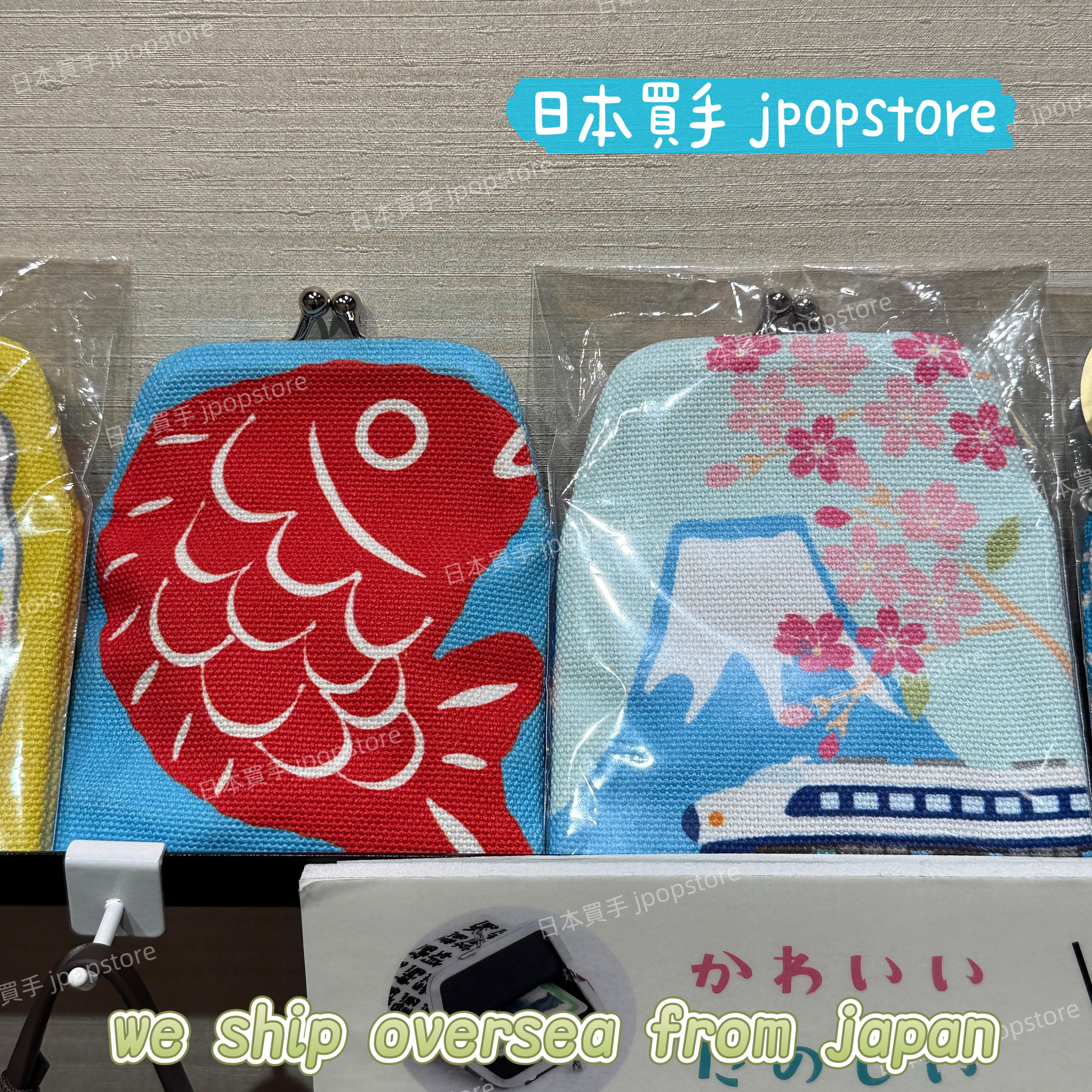 經典和風圖案がま口小錢包,日本製造,輕巧耐用。鯛魚 / 富士山櫻花新幹線