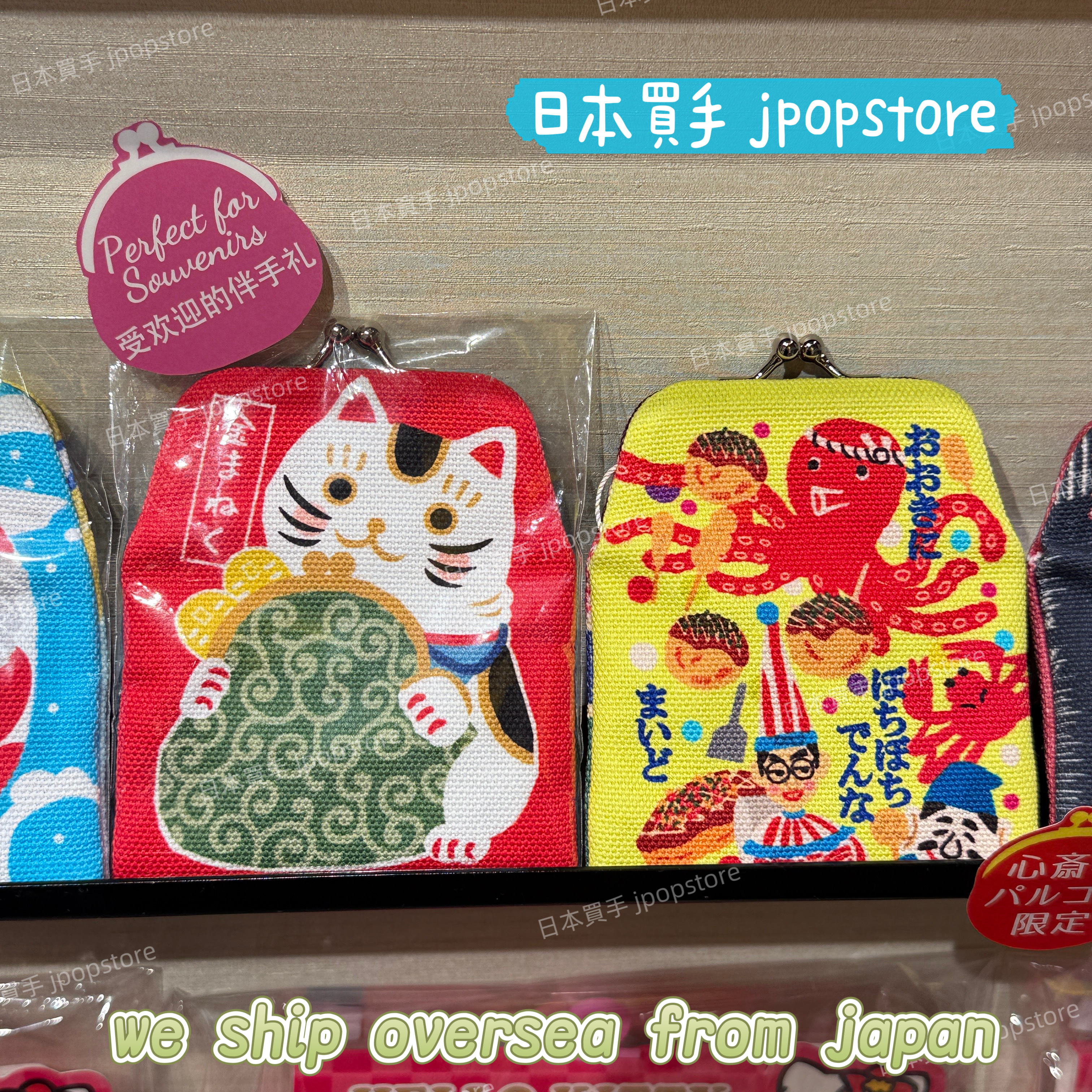 經典和風小錢包,日本製造,招財貓寓意好運,大阪章魚燒圖案充滿特色。