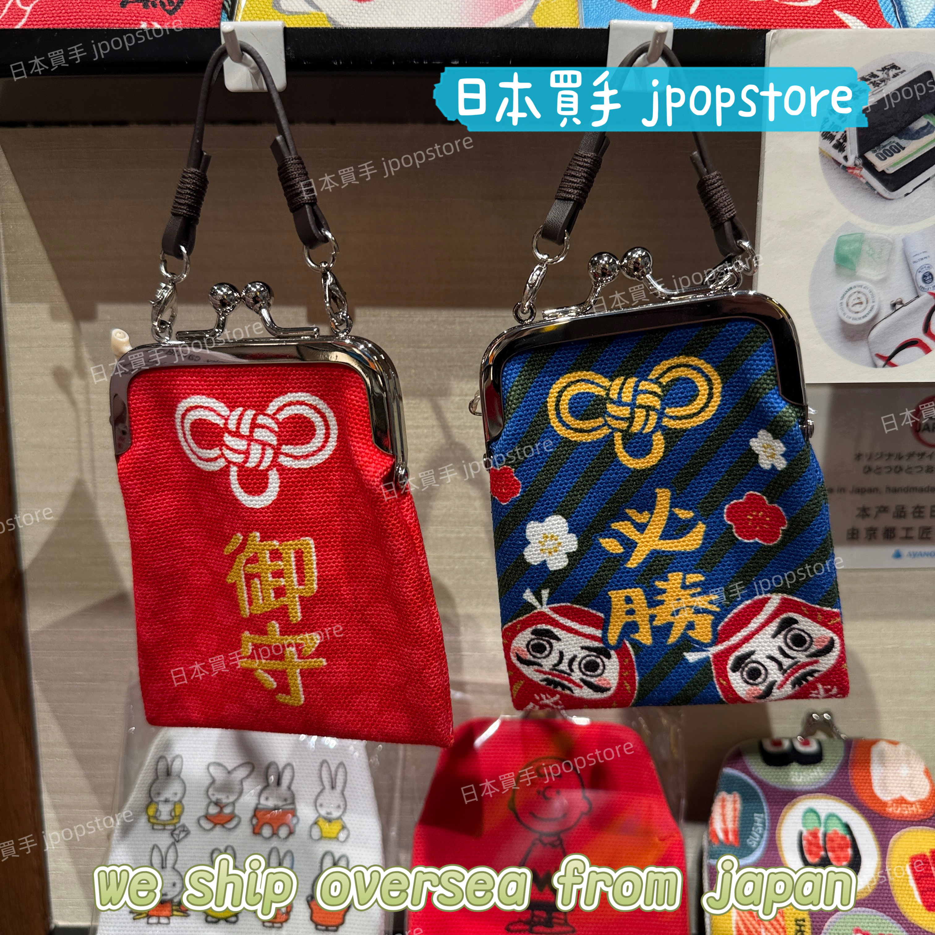 日本製經典がま口設計,御守 & 必勝達摩圖案,寓意護身平安與勝利祈願。