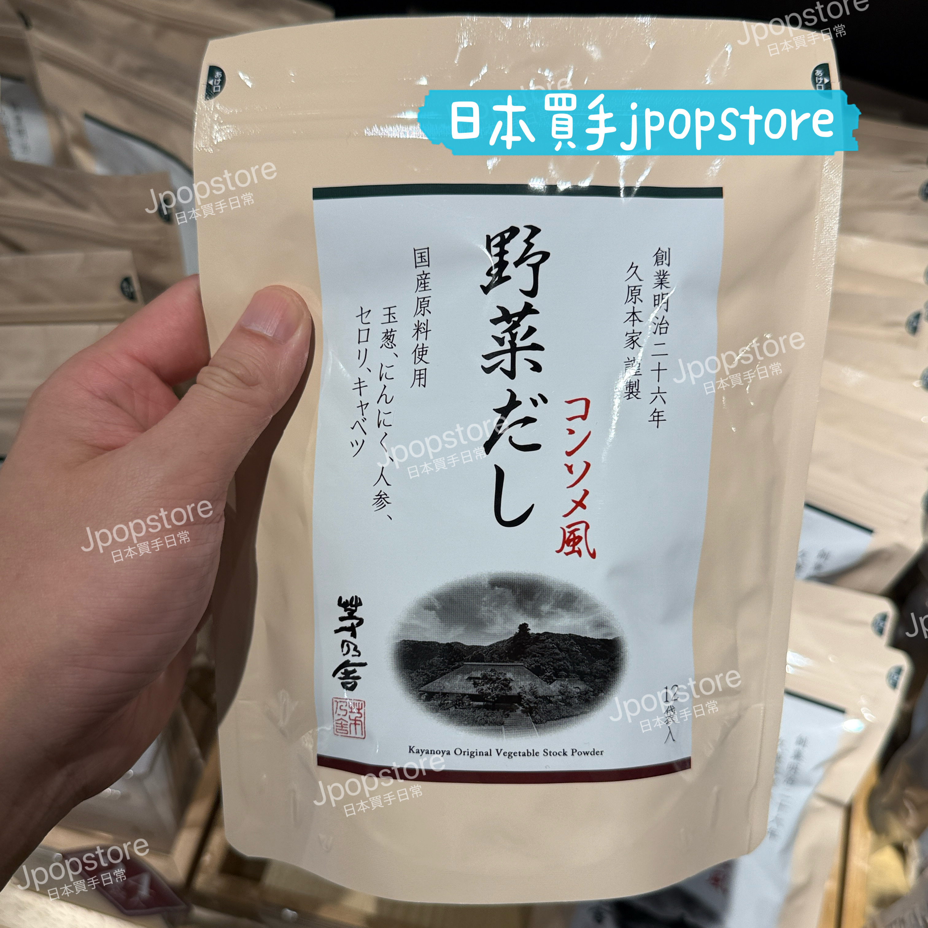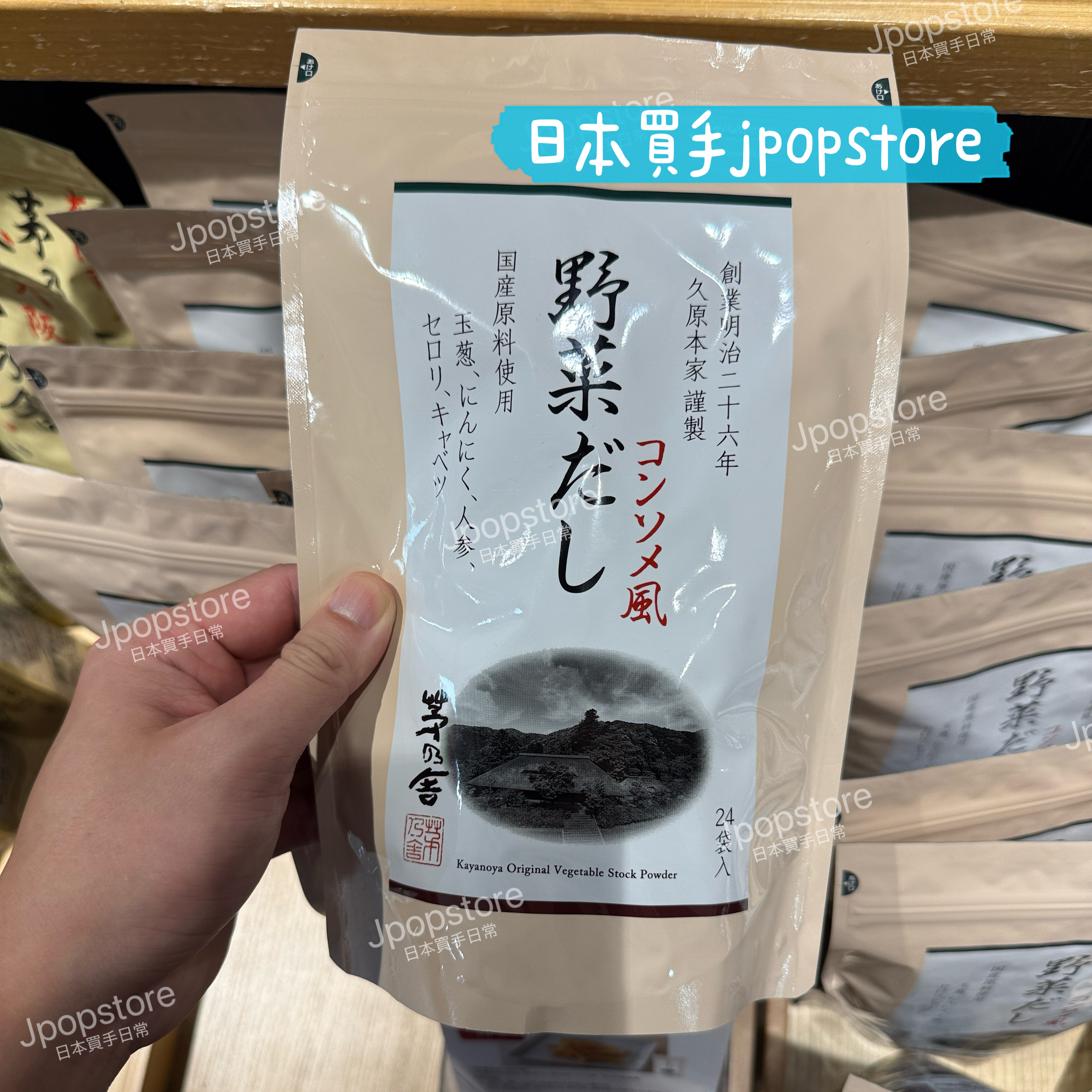 茅乃舎出品的【野菜だし コンソメ風】,嚴選國產食材製作,包括洋蔥、蒜頭、紅蘿蔔、芹菜、捲心菜。