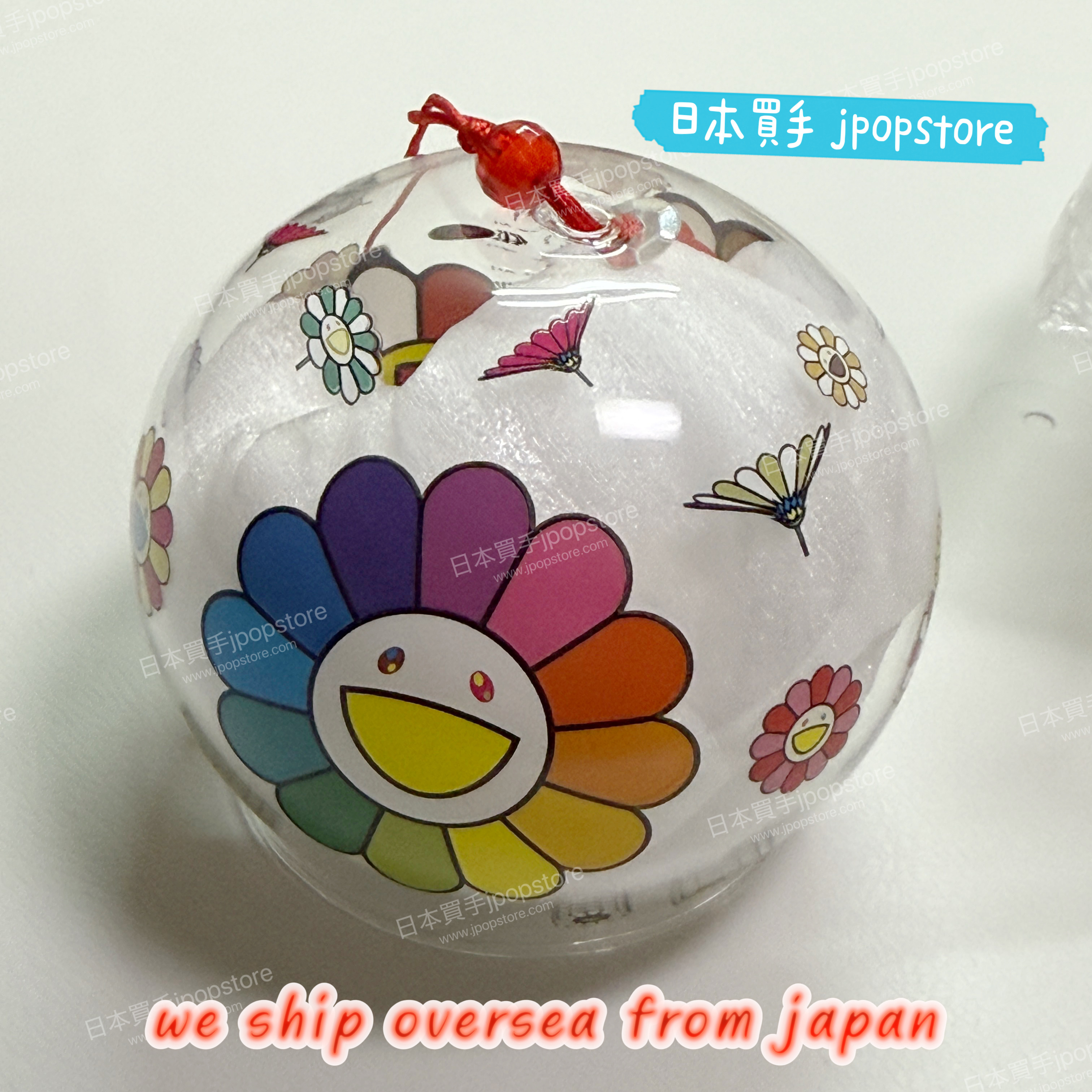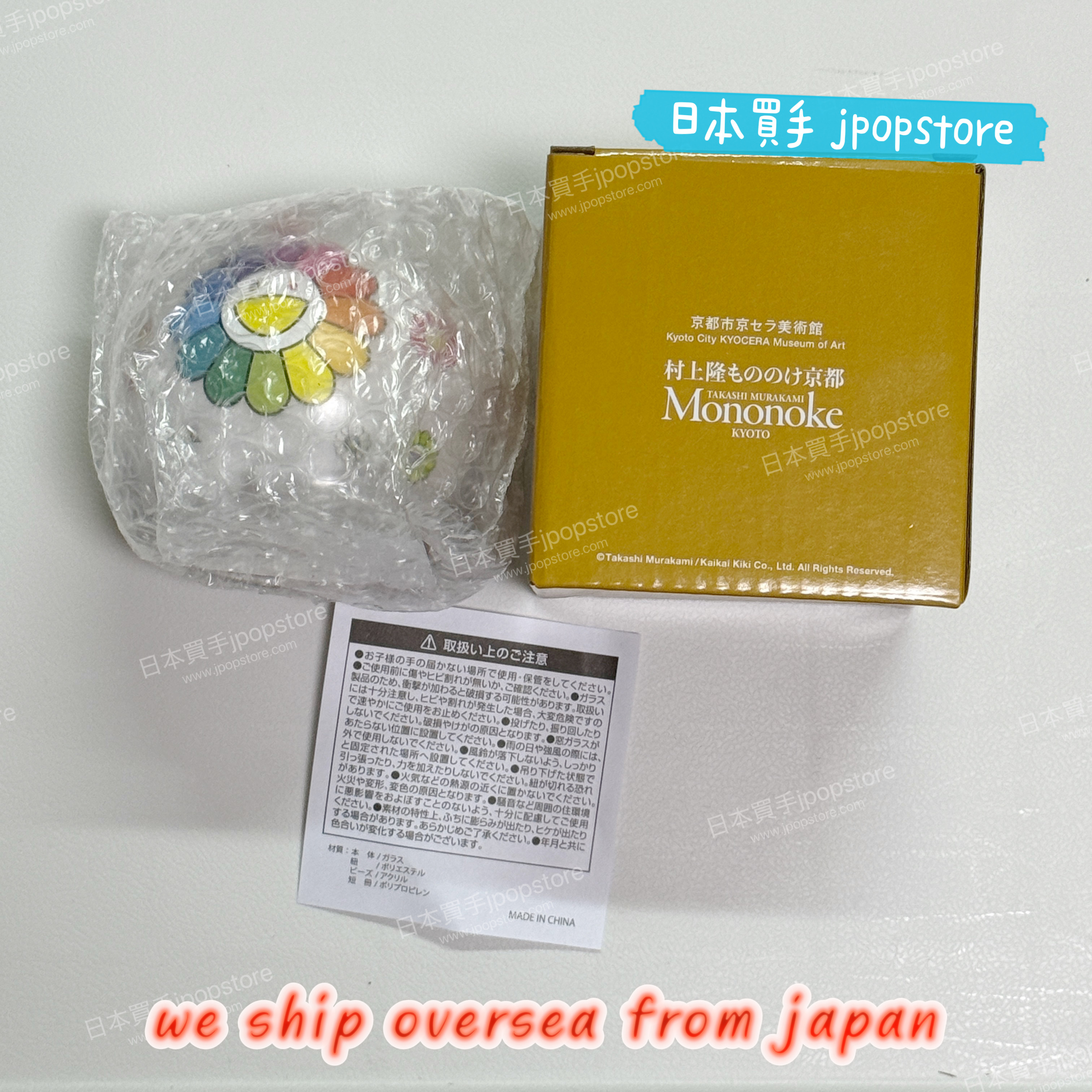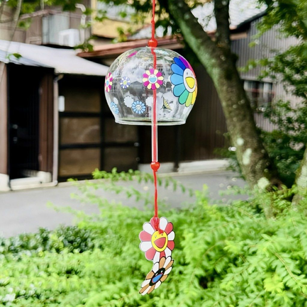 村上隆京都展2024限定周邊,玻璃風鈴設計以經典笑臉花為主題,色彩繽紛,極具收藏價值。日本現貨發售,數量有限。